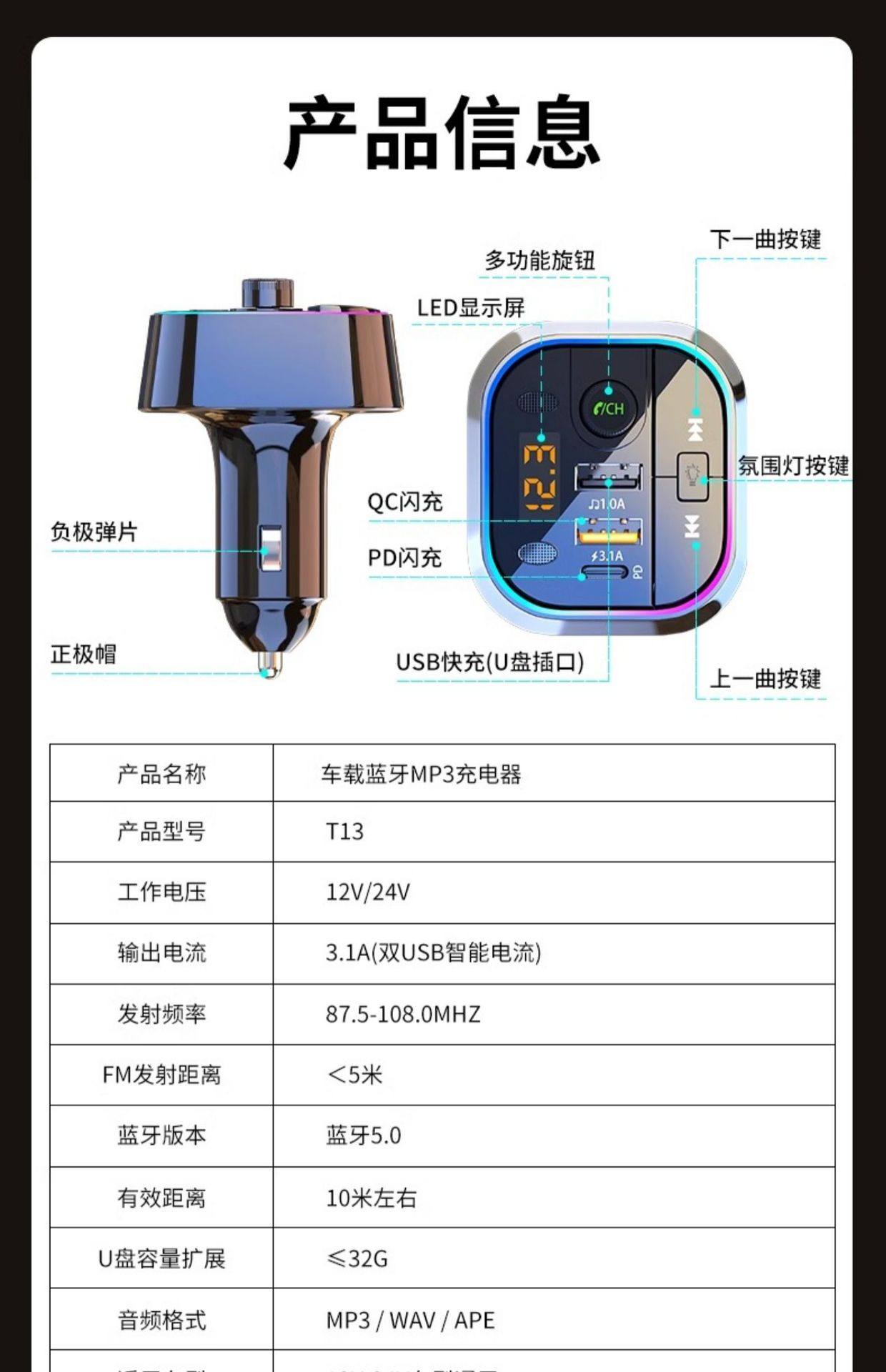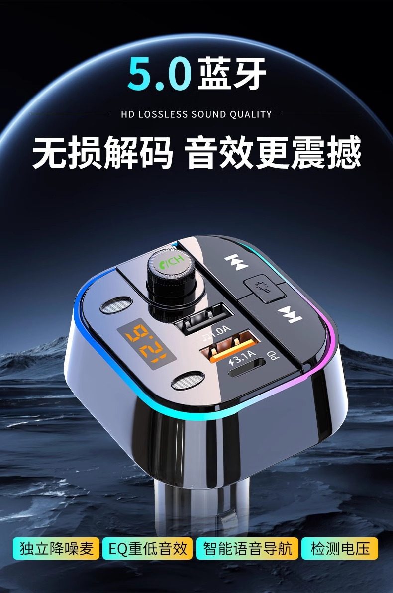 Car mobile phone super fast charger bluetooth 5.0 receiver lossless sound quality mp3 car U disk music player
