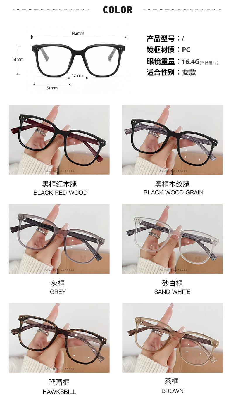 | Frame color | Black frame wood grain frame,Transparent frame,Tea frame,Black frame red legs,Gray frame,Bean flower frame |