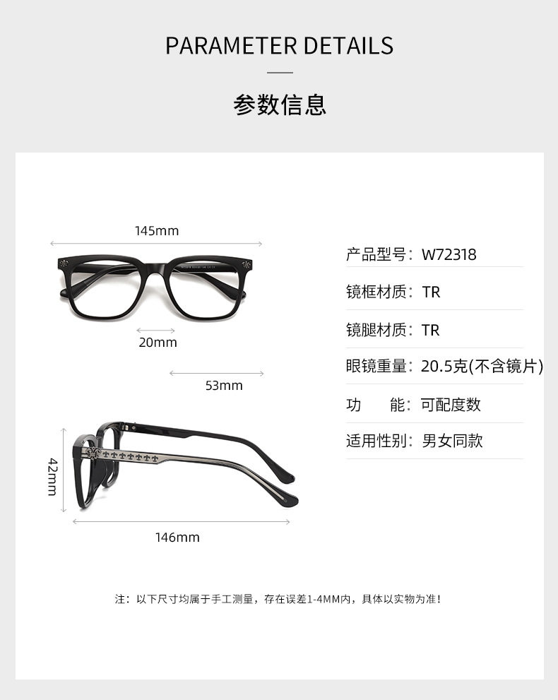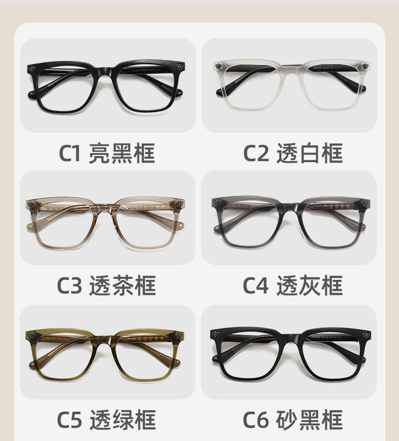 | Frame color | C1 bright black frame,C2 transparent white frame,C3 transparent tea frame,C4 transparent gray frame,C5 transparent green frame,C6 sand black frame |
