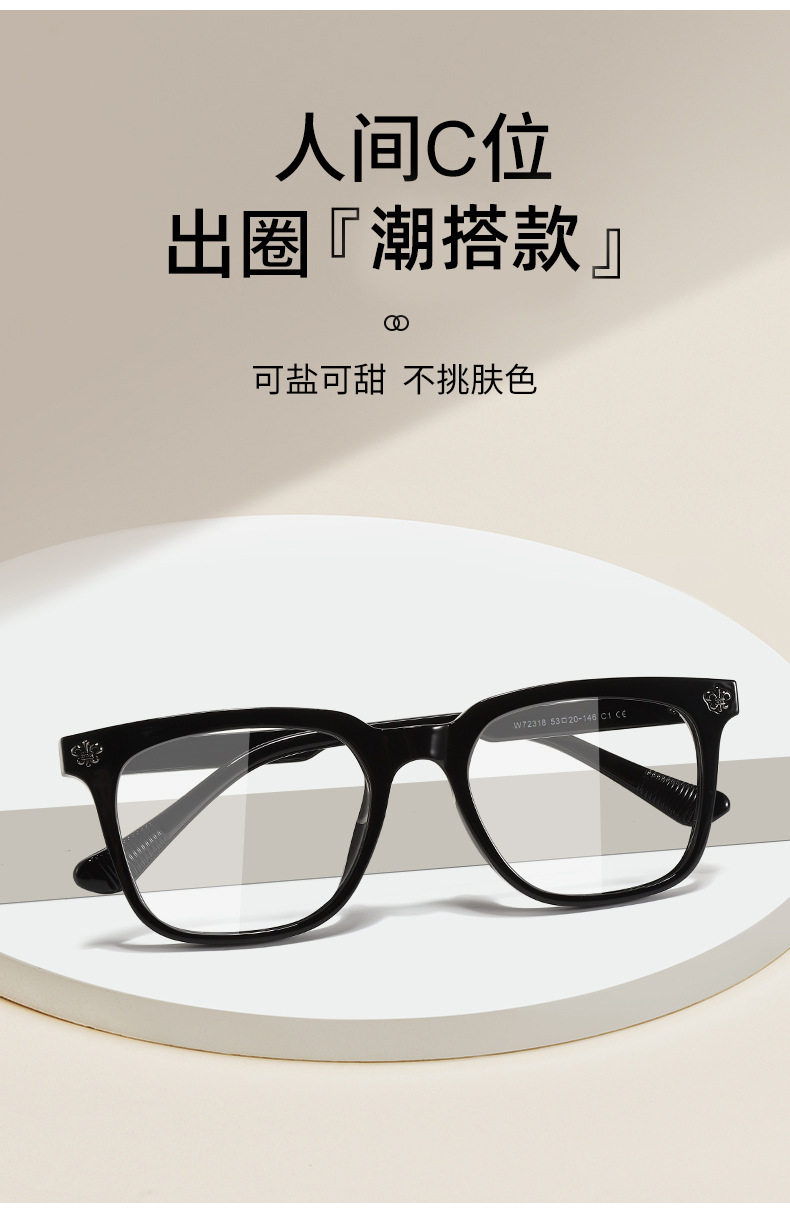 72318 new TR90 black myopia frame men and women's personality large frame flat lens can be equipped with the number of glasses frame