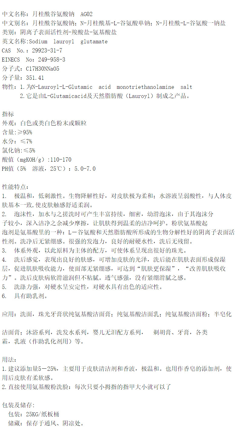 Factory Wholesale Cosmetic Grade Sodium Lauroyl Glutamate Amino Acid Foaming Powder Mild Surfactant