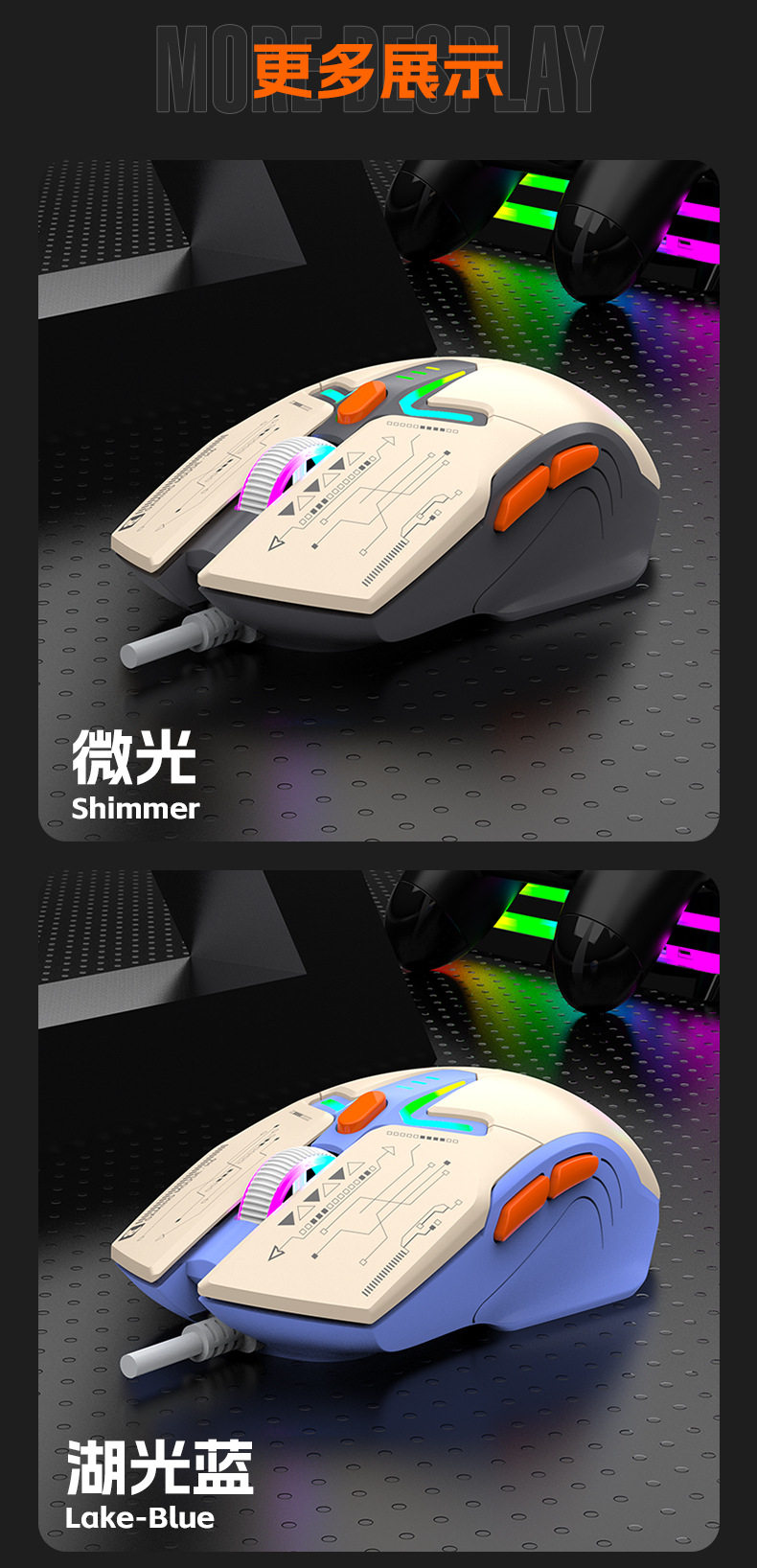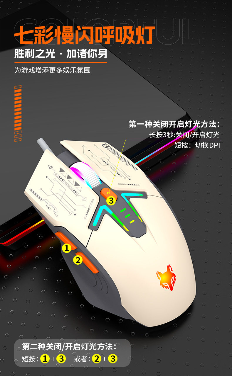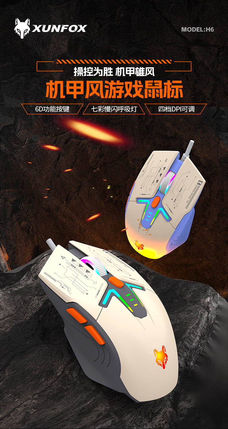 Shine silver fox H6 three-color luminous game mouse customized computer notebook USB wired 6D game mouse