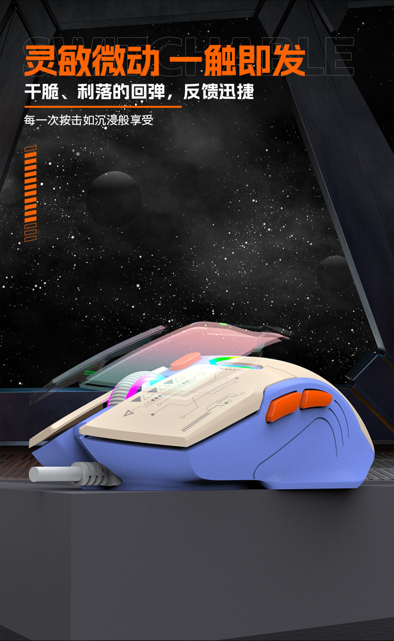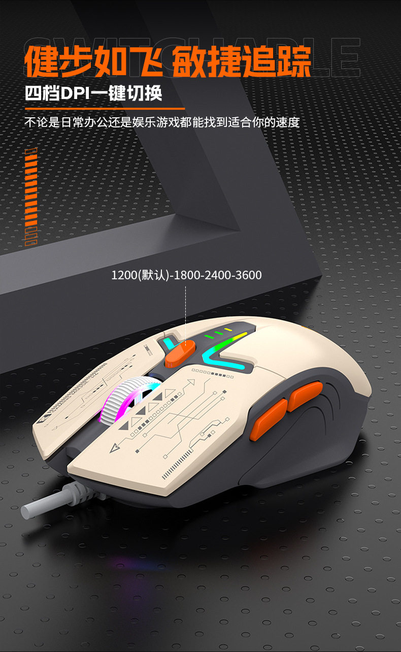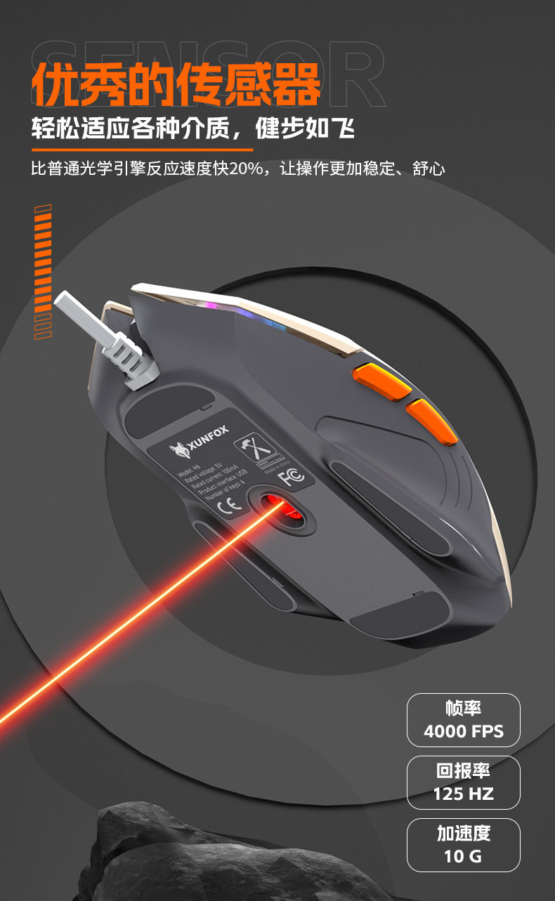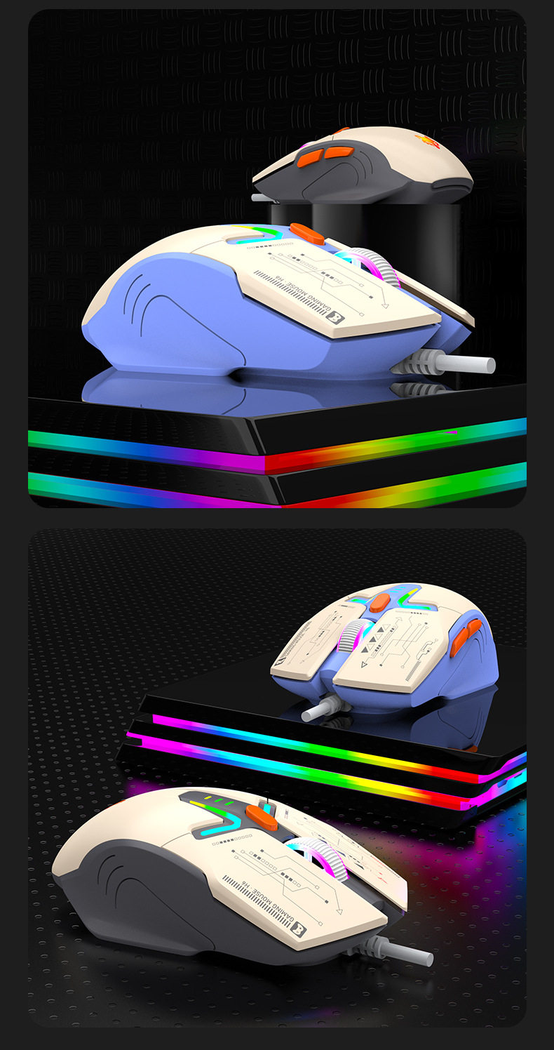 Shine silver fox H6 three-color luminous game mouse customized computer notebook USB wired 6D game mouse