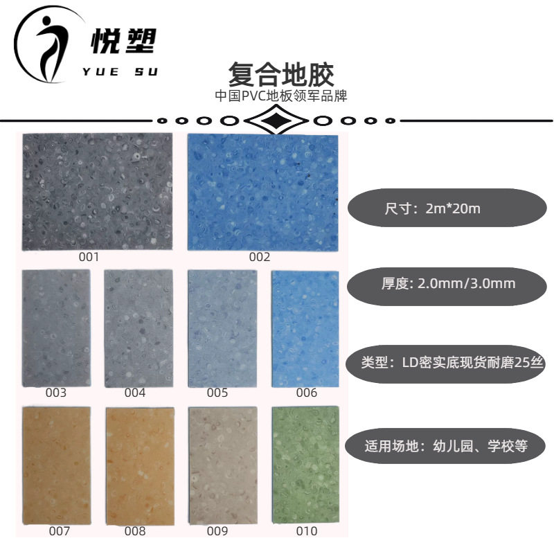Wholesale wholesaler plastic floor wear-resistant non-slip PVC floor mat kindergarten hospital workshop floor adhesive floor leather
