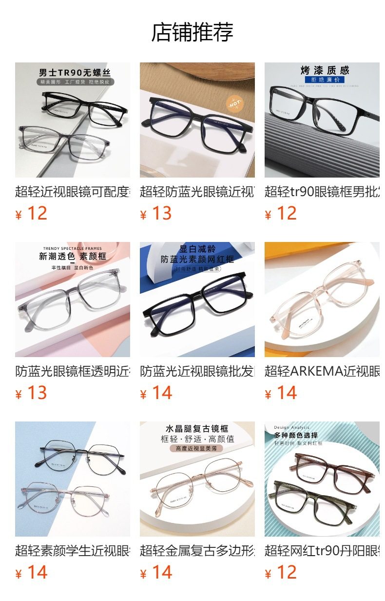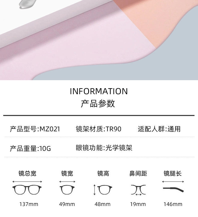 Ultra-light tr90 frame transparent net red myopia glasses can be equipped with non-metal glasses frame Danyang glasses wholesale