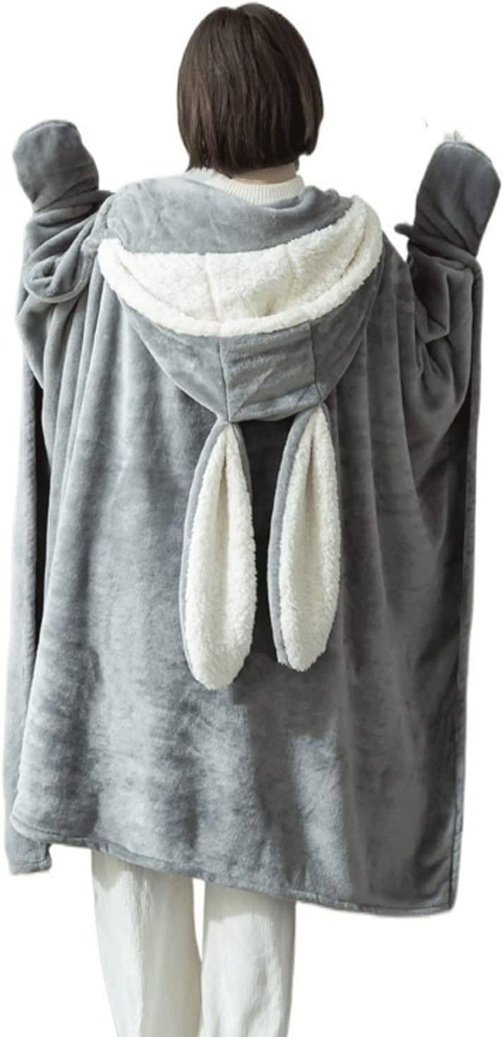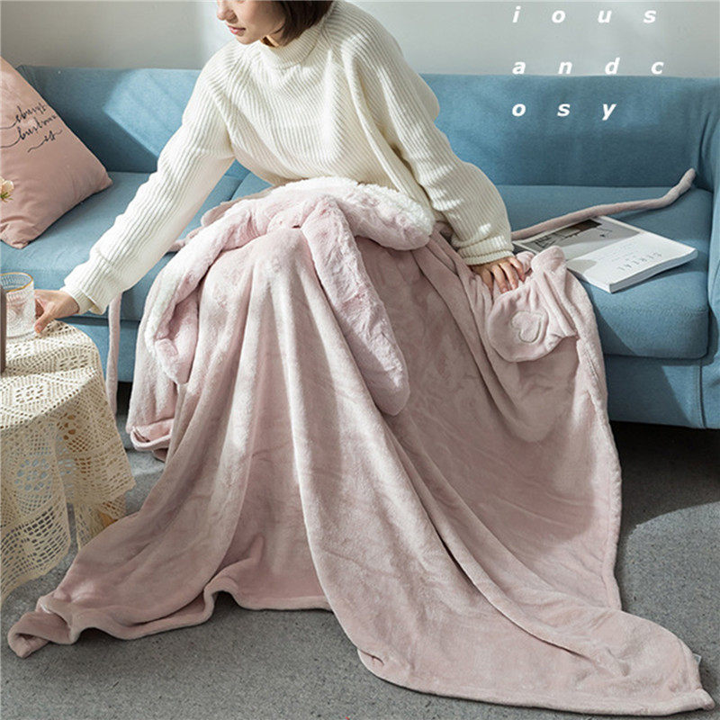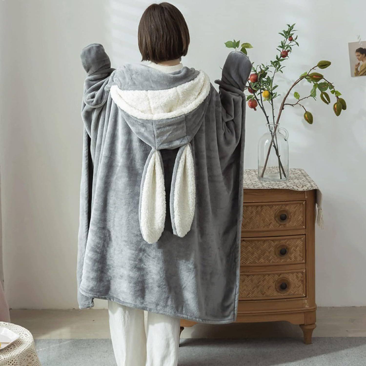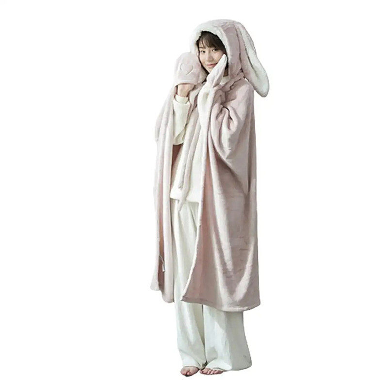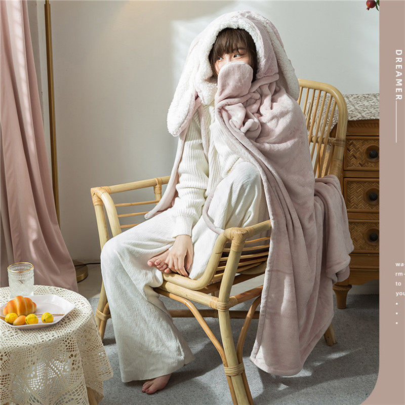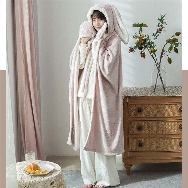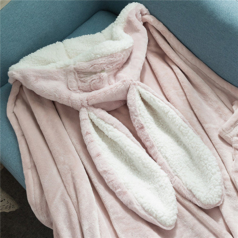 Amazon Shawl Blanket Wearable Cloak Blanket with Hooded Cute Rabbit Ear Bed Blanket Winter Adult Warm Blanket