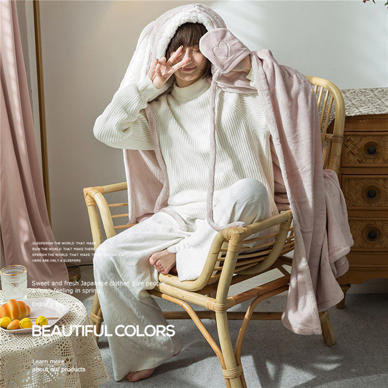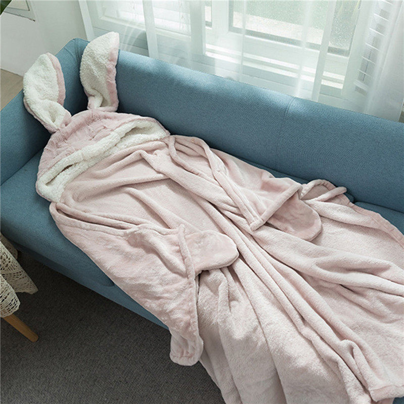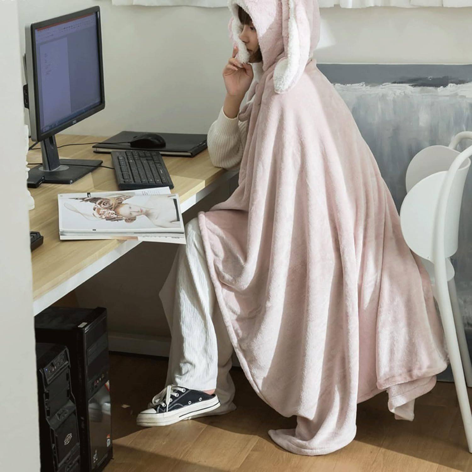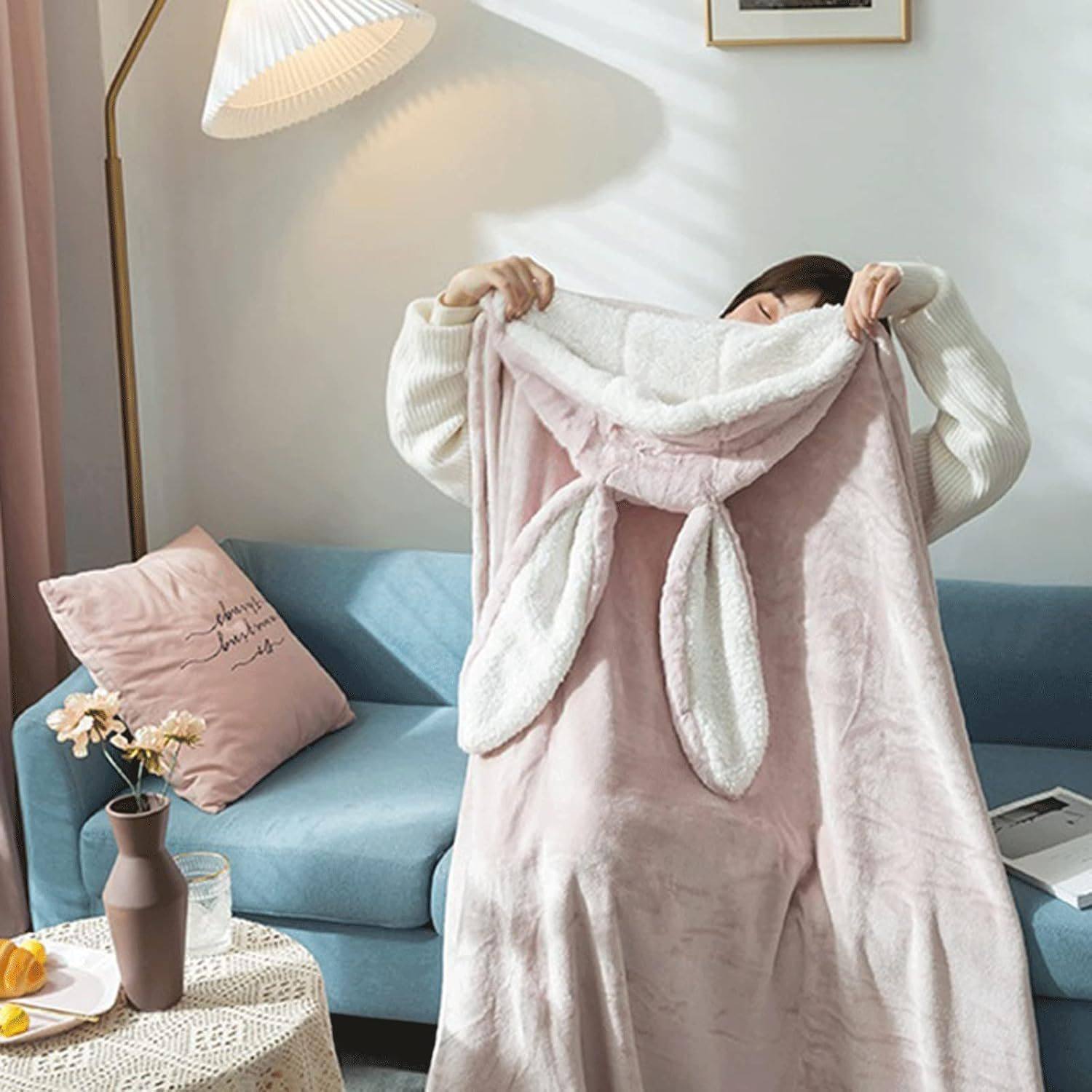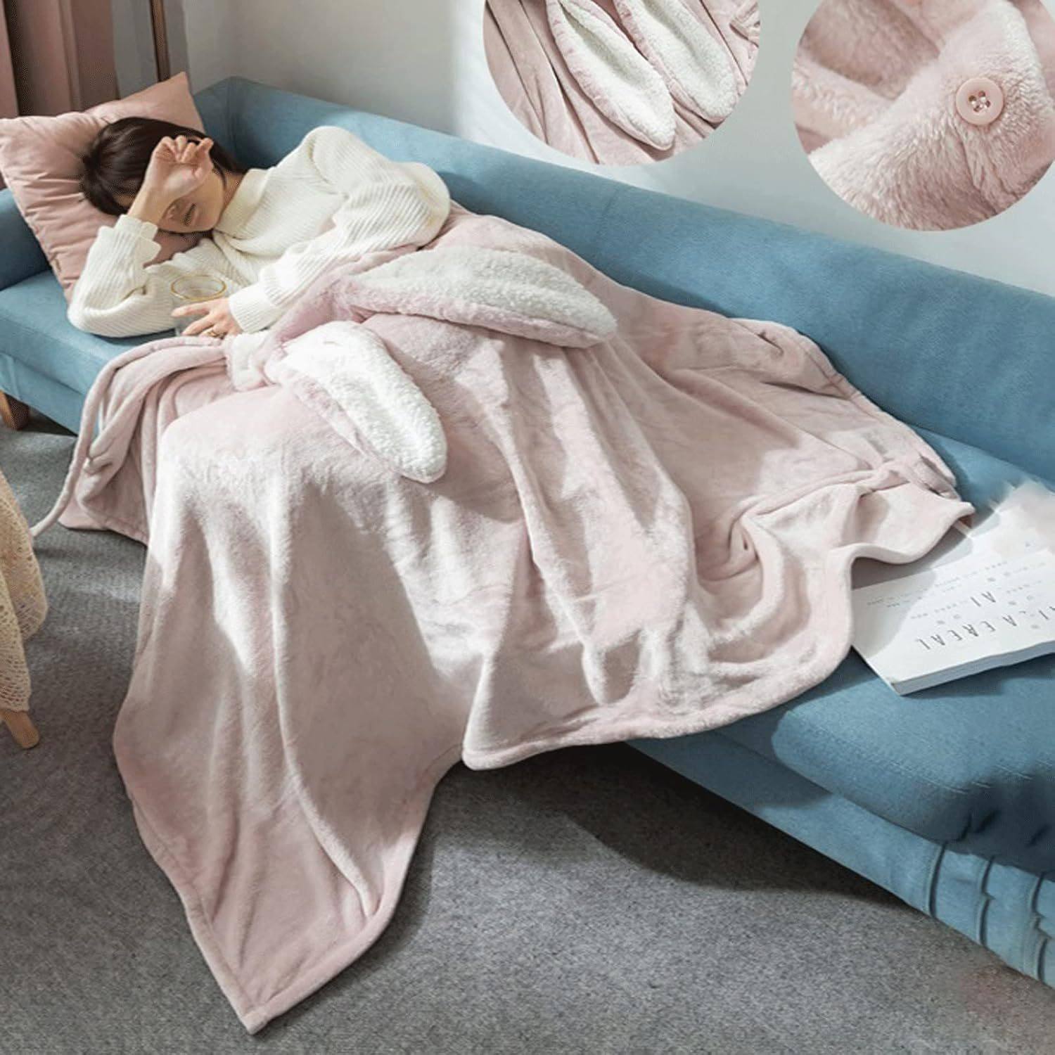 Amazon Shawl Blanket Wearable Cloak Blanket with Hooded Cute Rabbit Ear Bed Blanket Winter Adult Warm Blanket