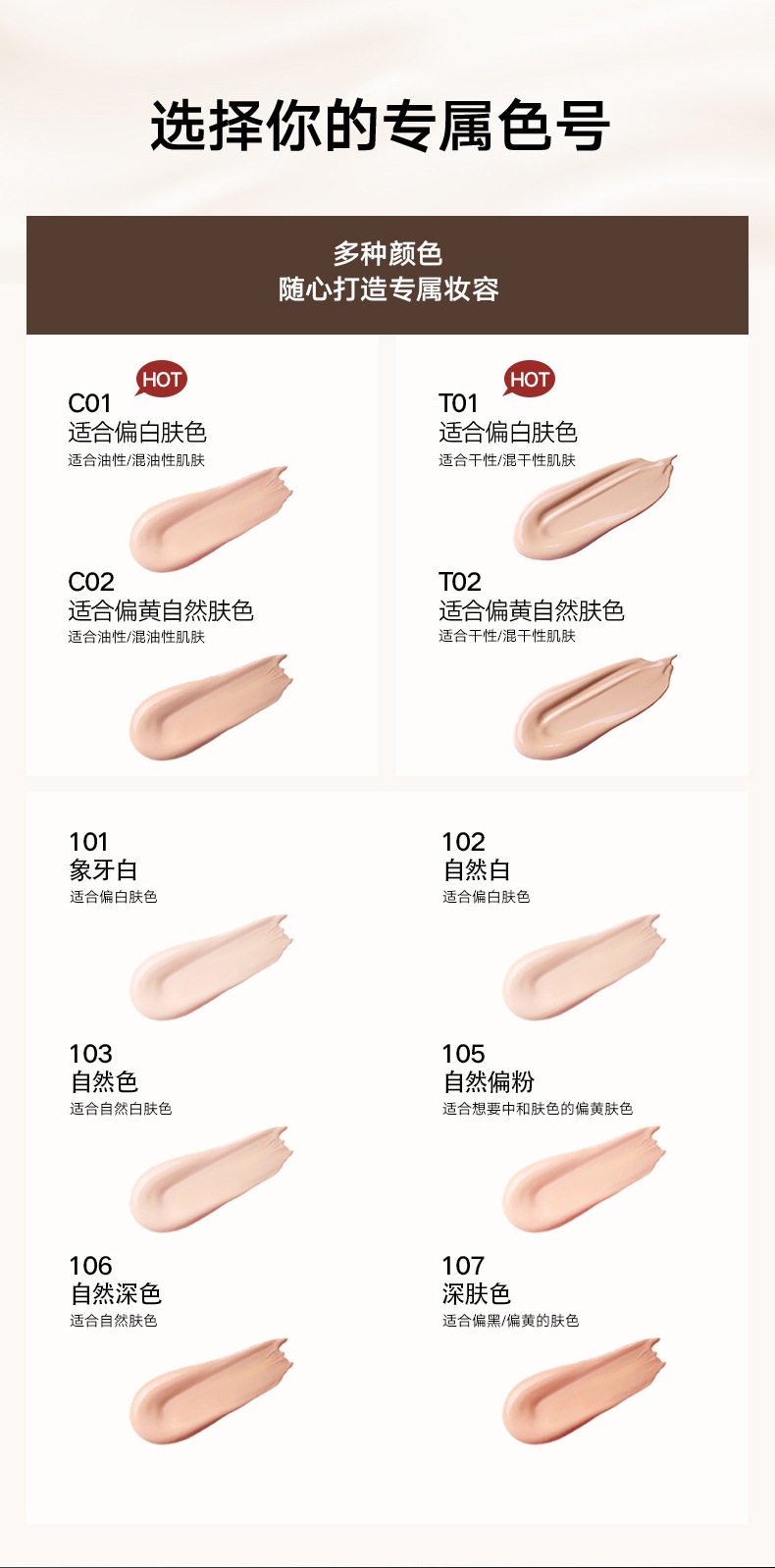 | Net content | C01 ivory white (oily skin),C02 warm porcelain white-natural color (oily skin),T01 ivory white (dry skin),T02 warm porcelain white-natural color (dry skin) |