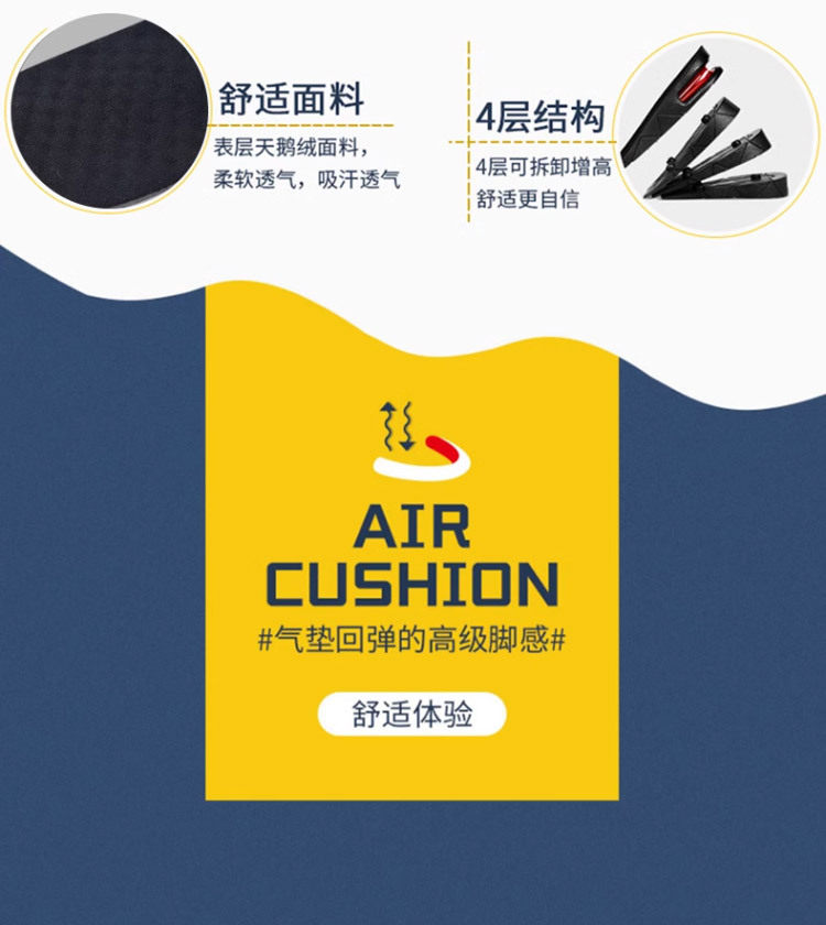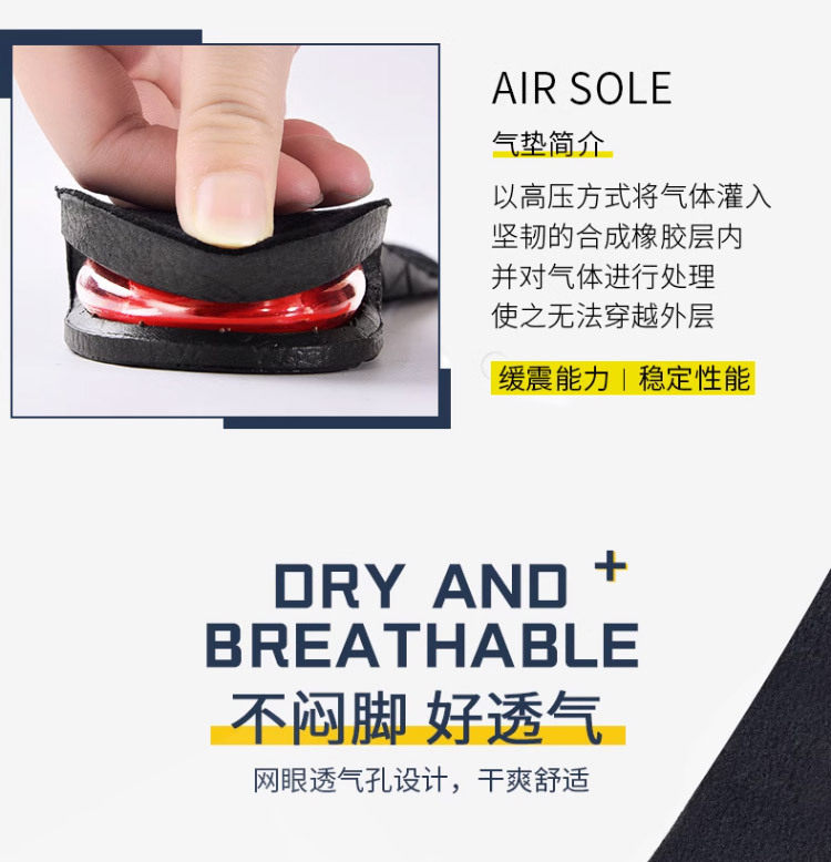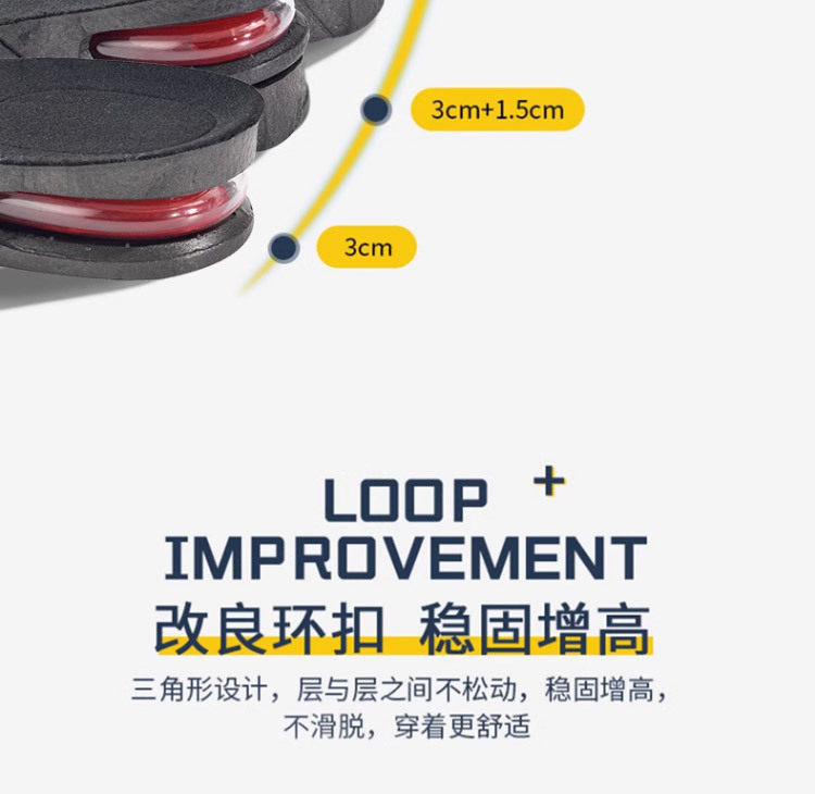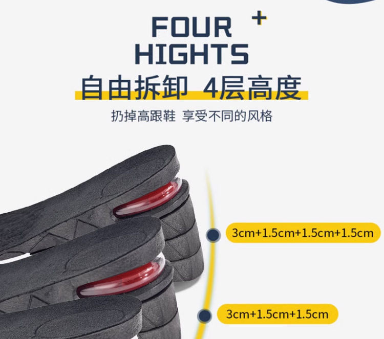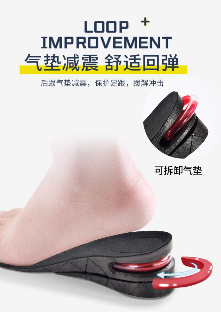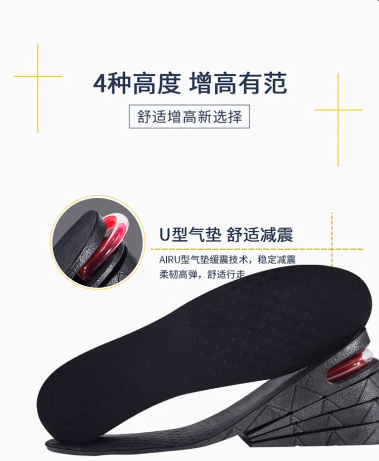 Removable invisible inner heightening insole cross-border men's and women's sneaker shock absorption multi-layer height heightening insole wholesale