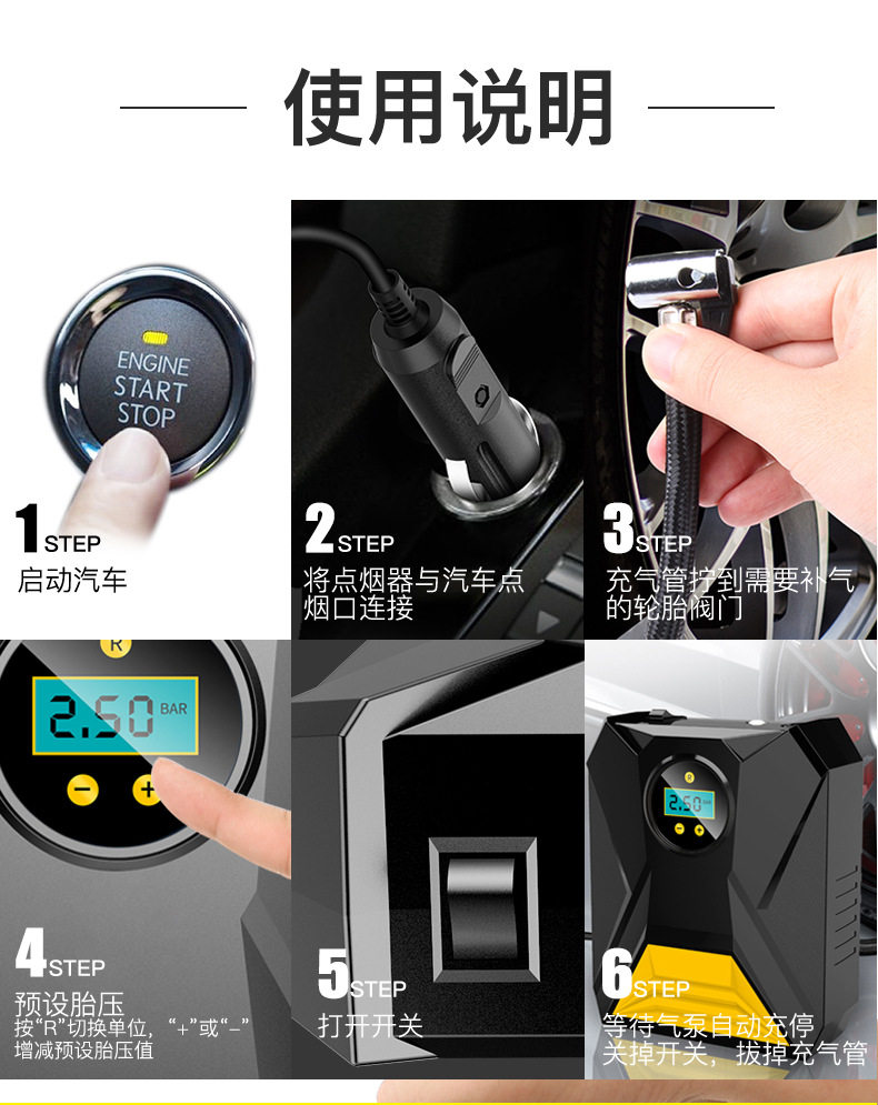 Car inflator car portable tire electric inflator 12V multifunctional stride