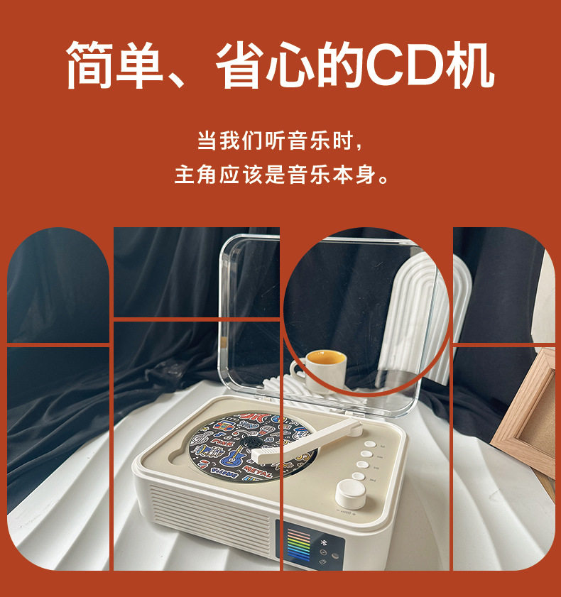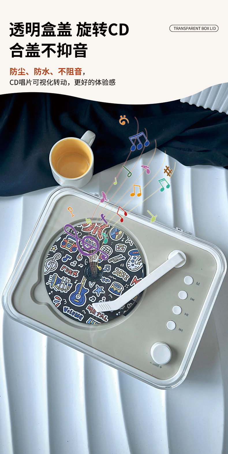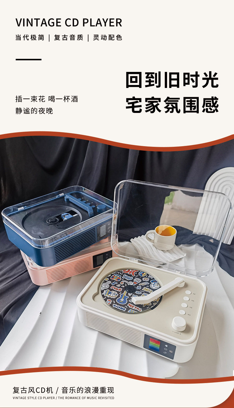 Cross-border high-value CD player portable multifunctional retro bluetooth stereo lasting HIFI sound quality birthday gift