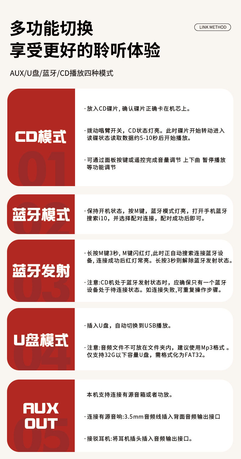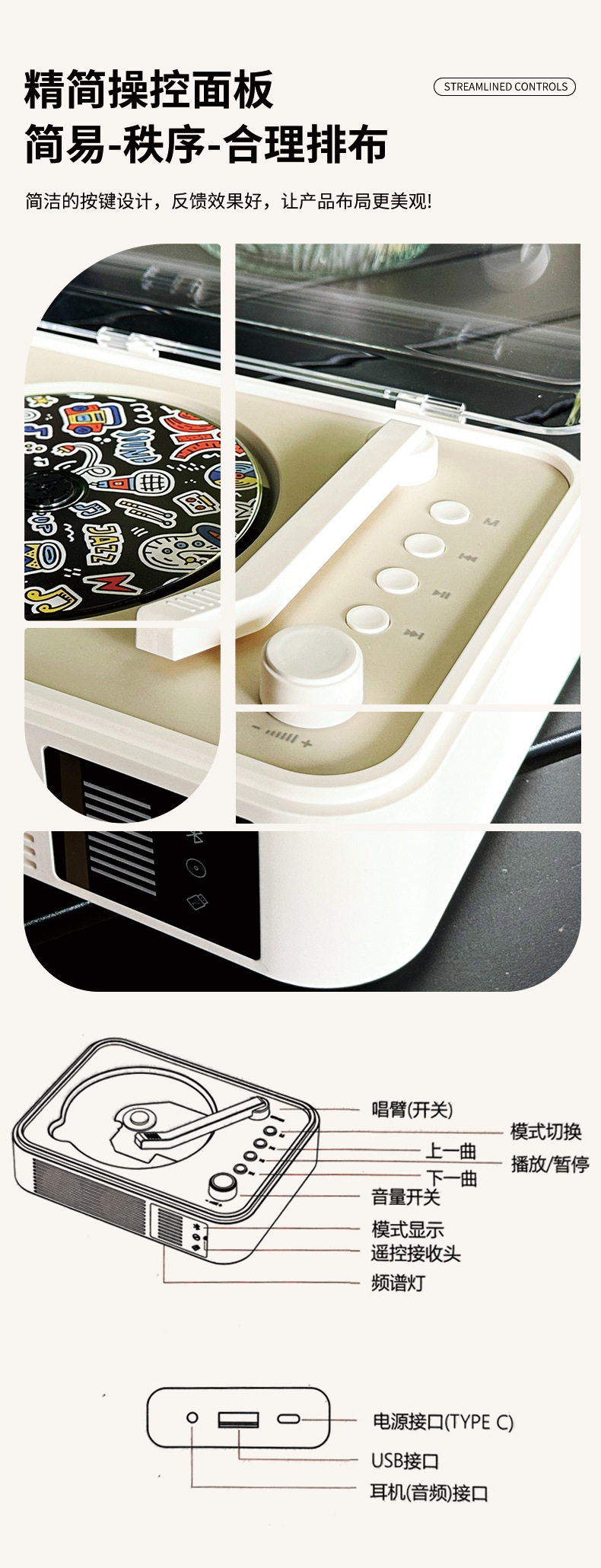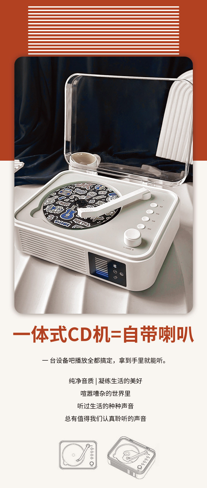 Cross-border high-value CD player portable multifunctional retro bluetooth stereo lasting HIFI sound quality birthday gift