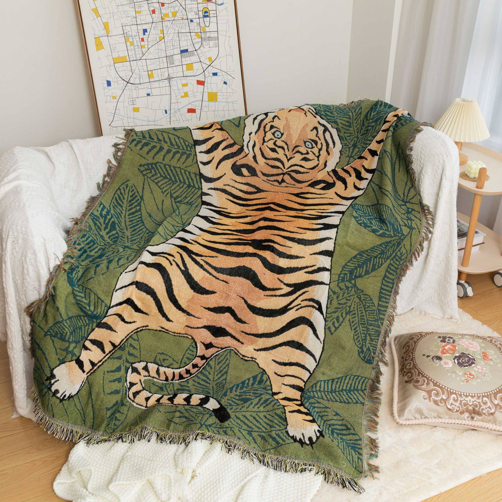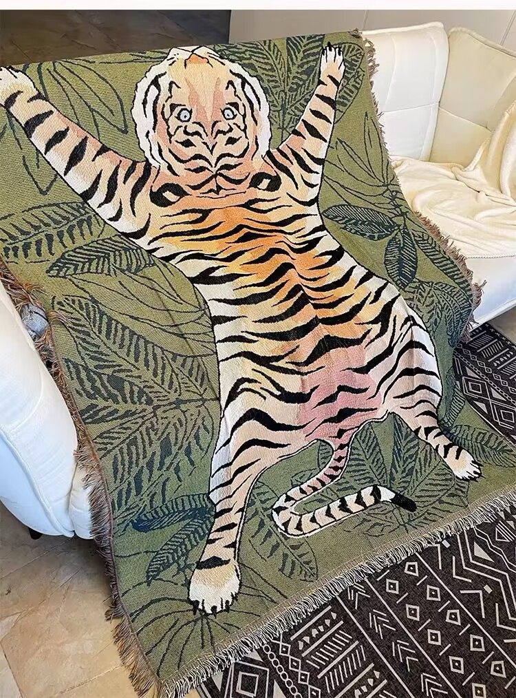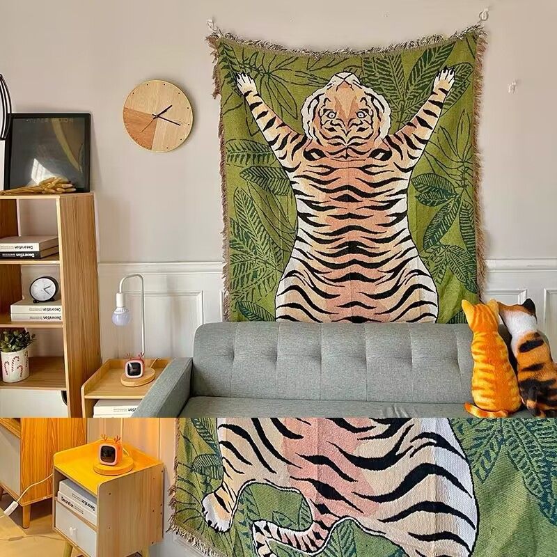 Cross-border Custom American Tiger Sofa Cover Sofa Cover Four Seasons Universal Thread Blanket Tapestries Decorative Blanket Outdoor Camping