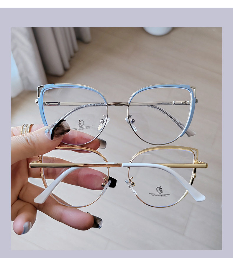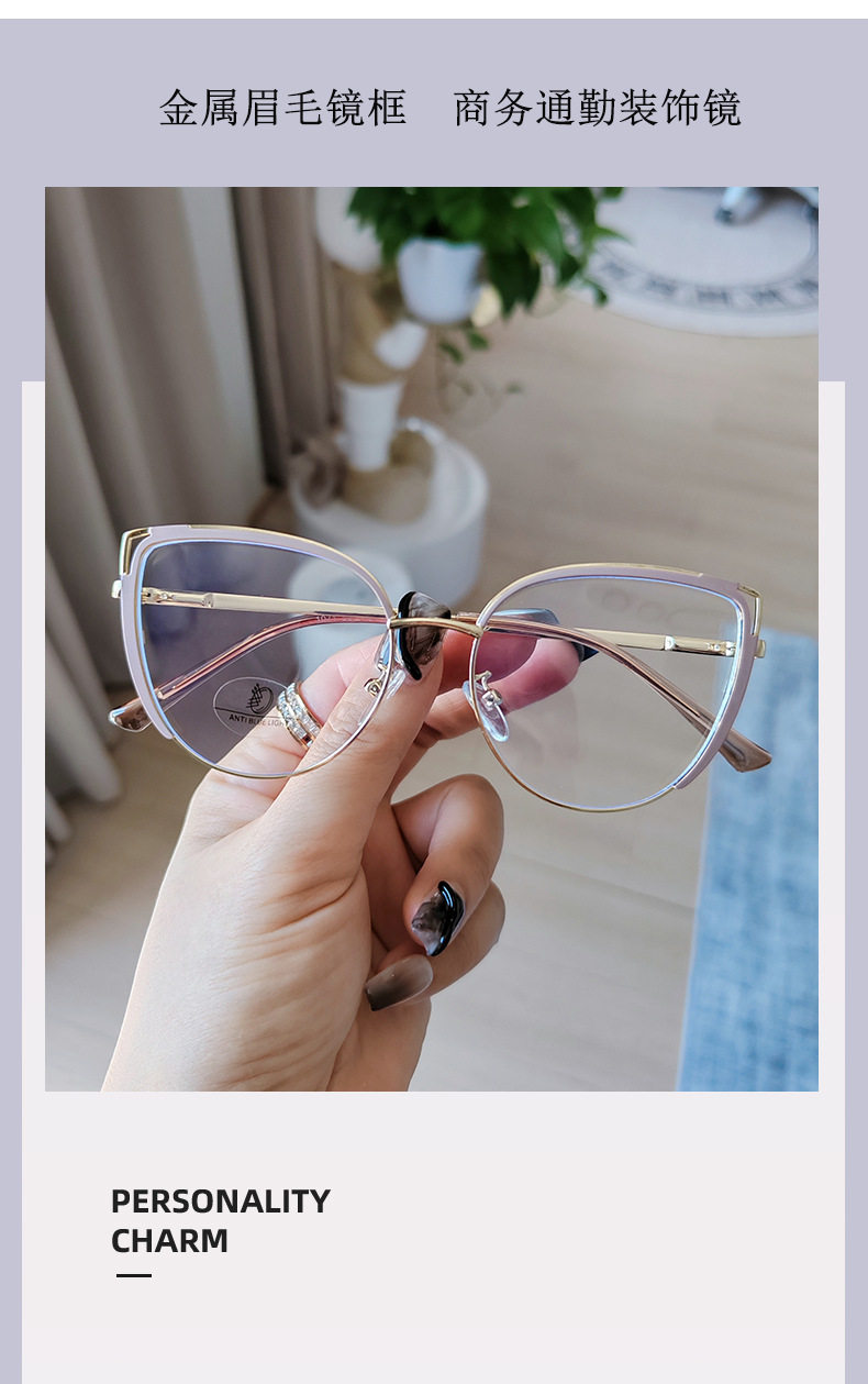 Business Hollow Eyebrow Fashion Anti-Blue Light Flat Mirror Metal Nearby Frame Retro Optical Frame
