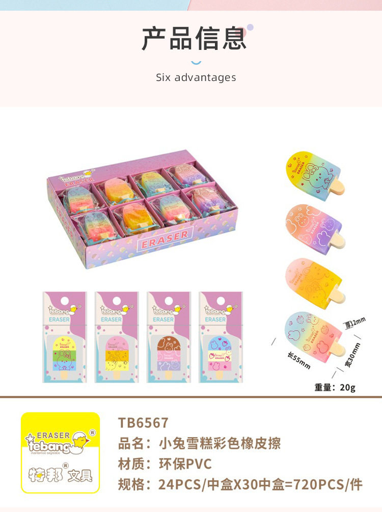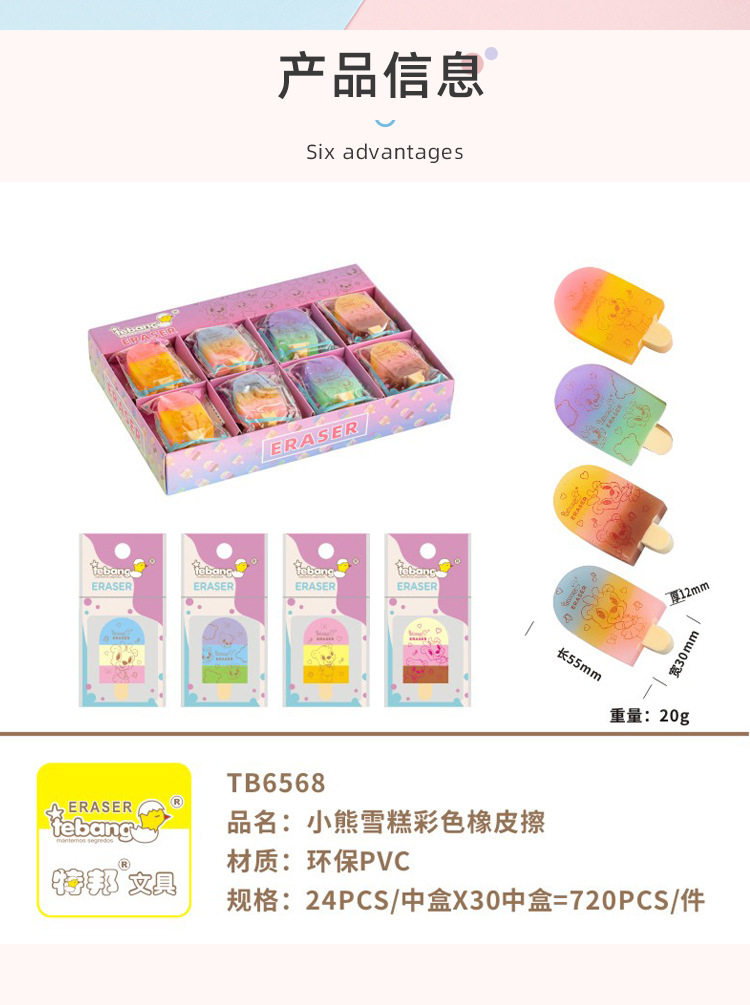 Creative primary school children's eraser ice cream rubber does not leave marks primary school students modeling popsicle high color value test