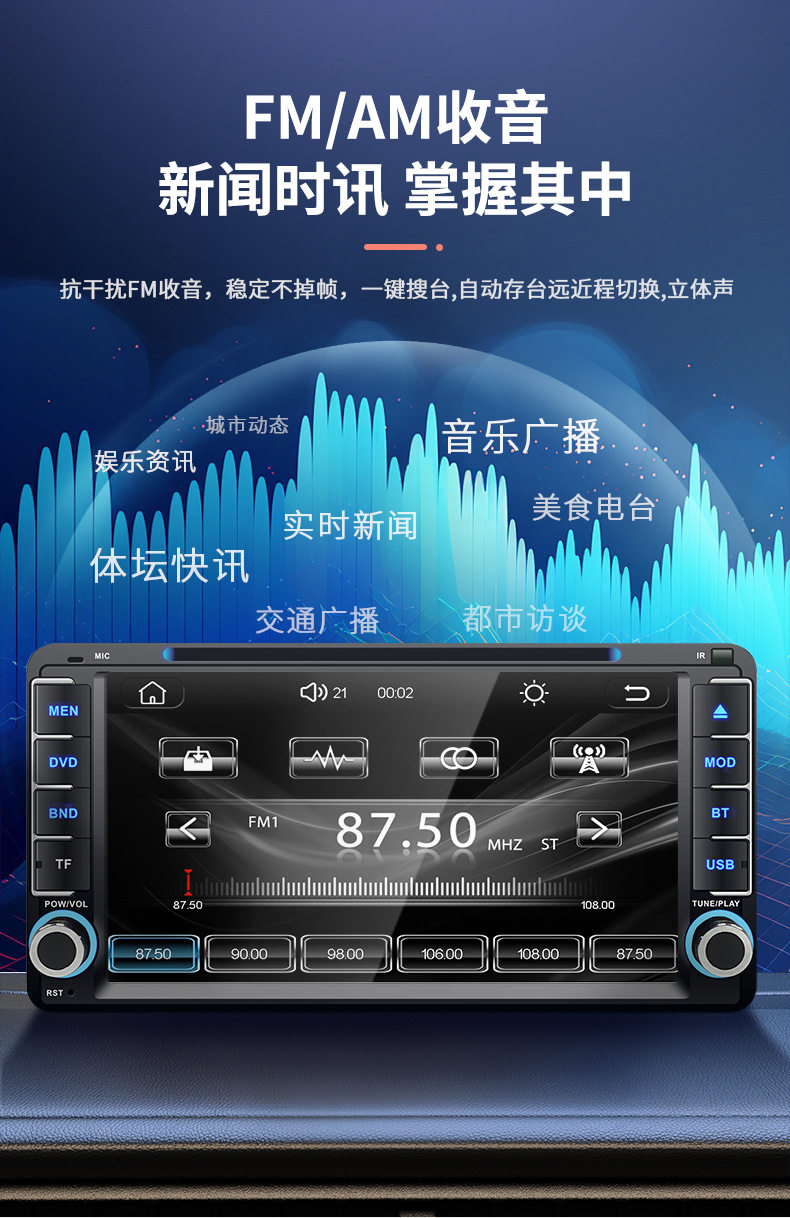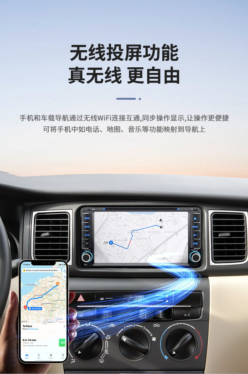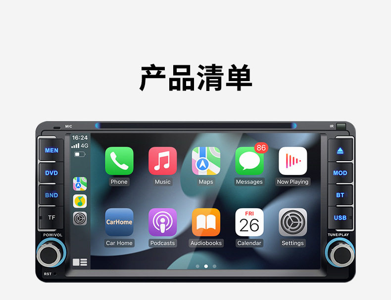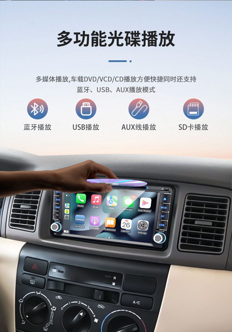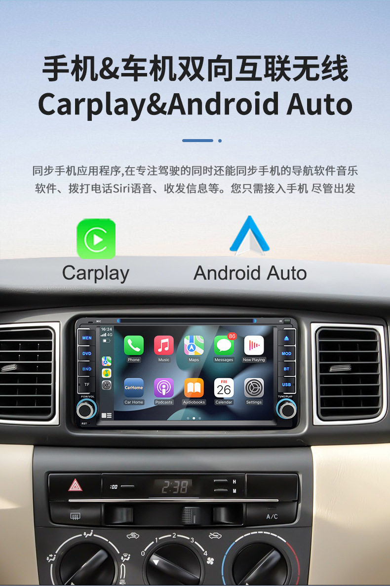 Car navigation player DVD Bluetooth reversing all-in-one wireless Carplay suitable for Toyota Corolla universal