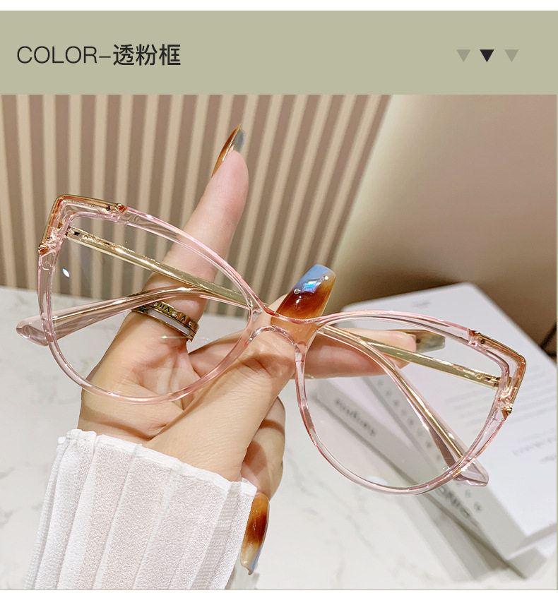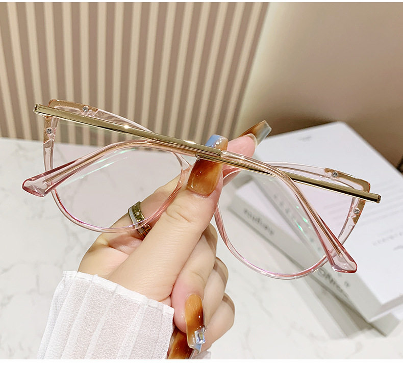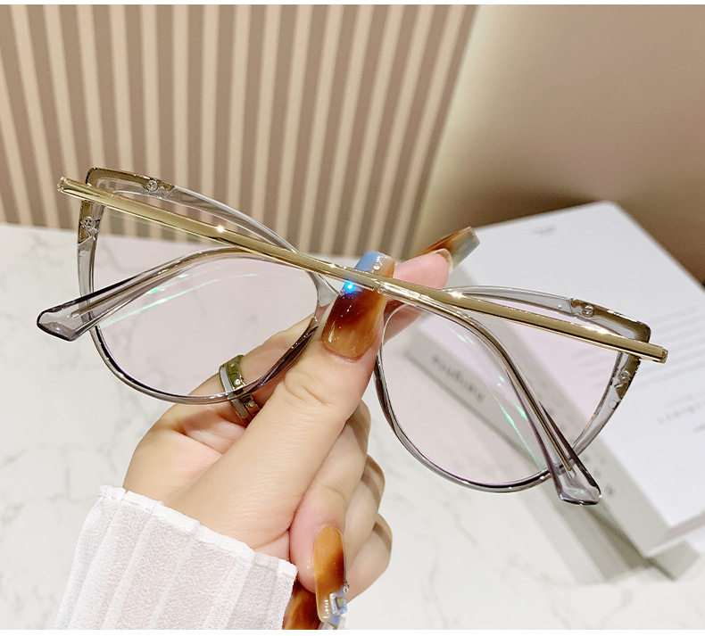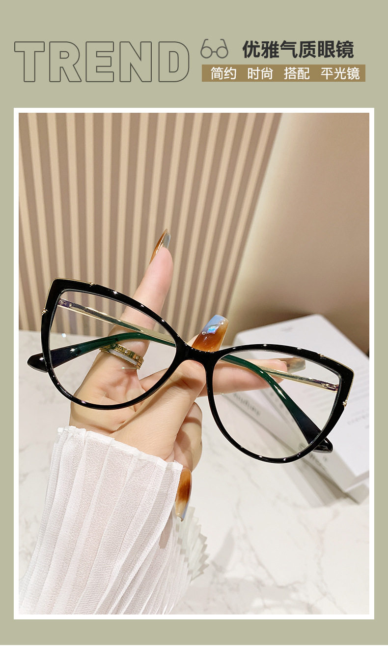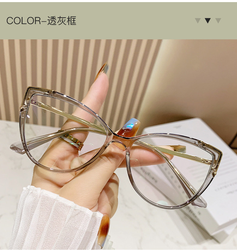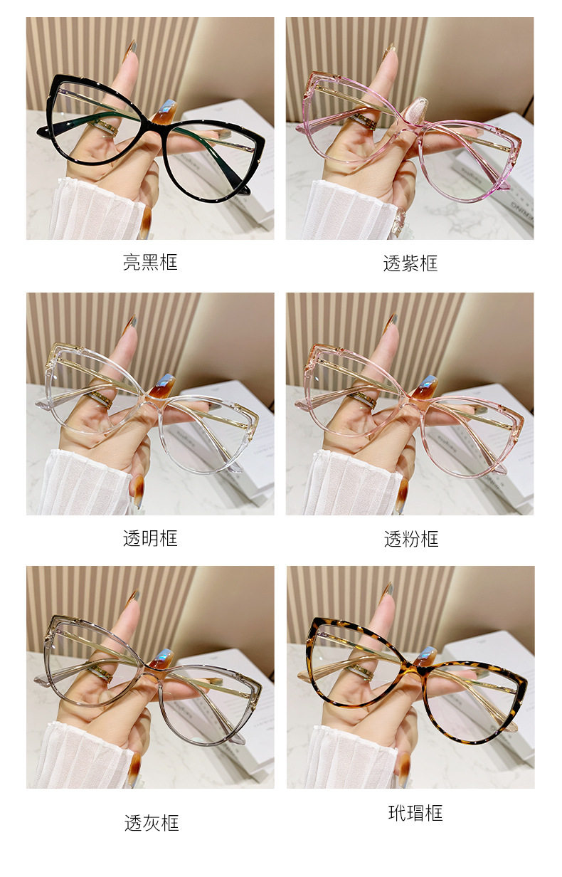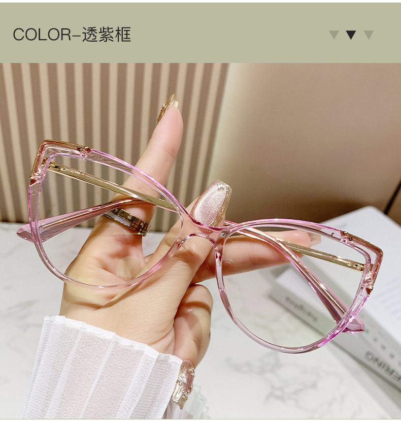 Glasses Frame European and American Explosions TR90 Anti-blue Light Flat Mirror Fashion Fashion Personalized Cat's Eye Plain All-match Color-changing Mirror