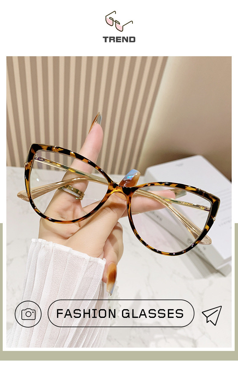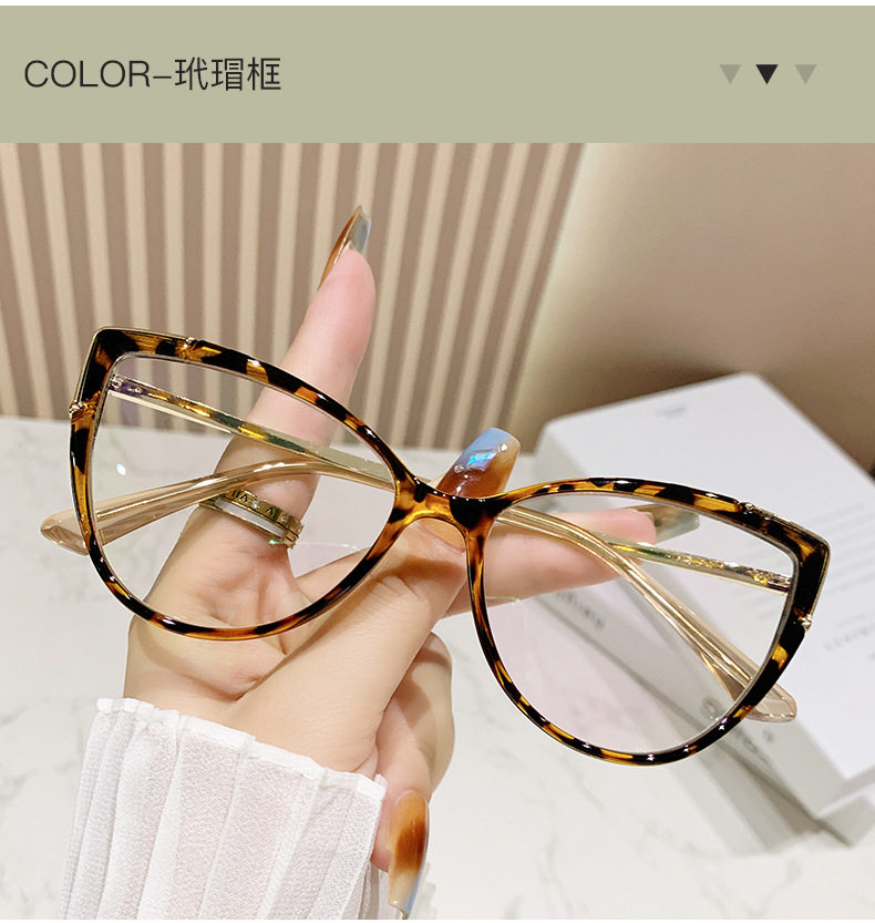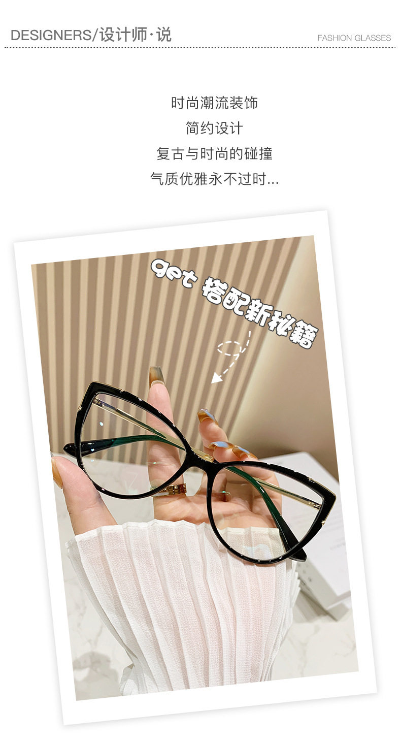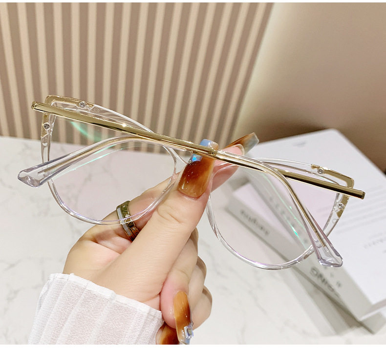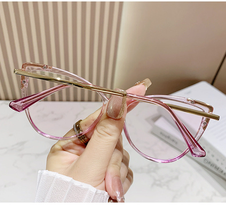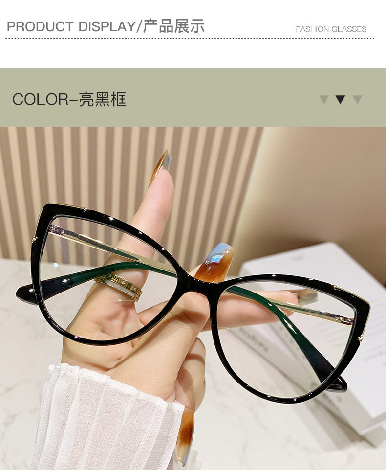 Glasses Frame European and American Explosions TR90 Anti-blue Light Flat Mirror Fashion Fashion Personalized Cat's Eye Plain All-match Color-changing Mirror
