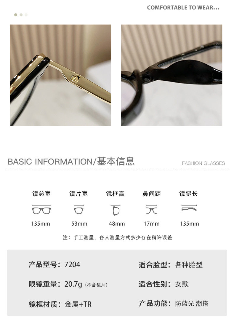 | Frame color | Glossy black frame,Transparent purple frame,Transparent frame,Transparent pink frame,Transparent gray frame,Tortoiseshell frame,Bright black frame turns gray,Translucent purple frame turns gray,Transparent frame turns gray,Translucent pink frame turns gray,Transparent gray frame turns gray,Tortoiseshell frame turns gray |