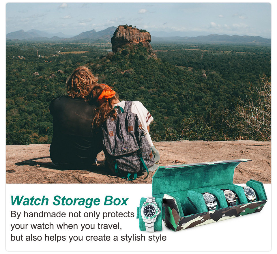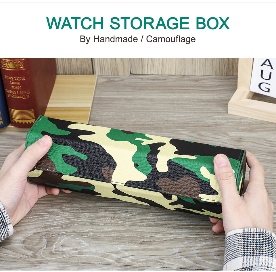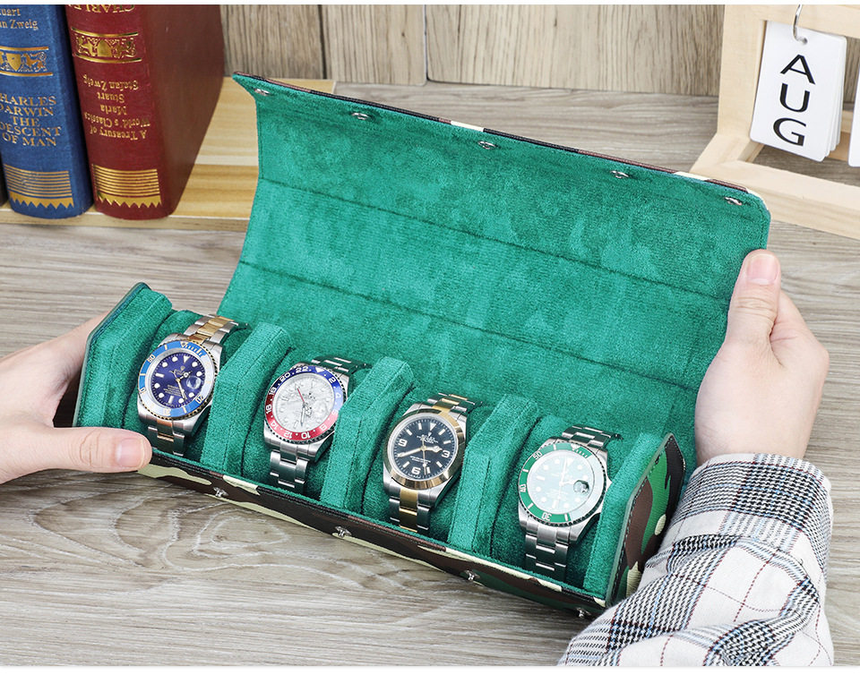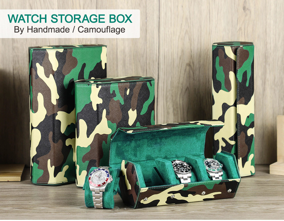 New first layer cowhide handmade camouflage four-position watch storage box travel portable leather watch box