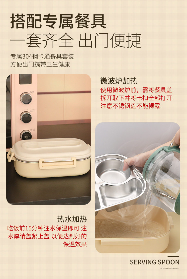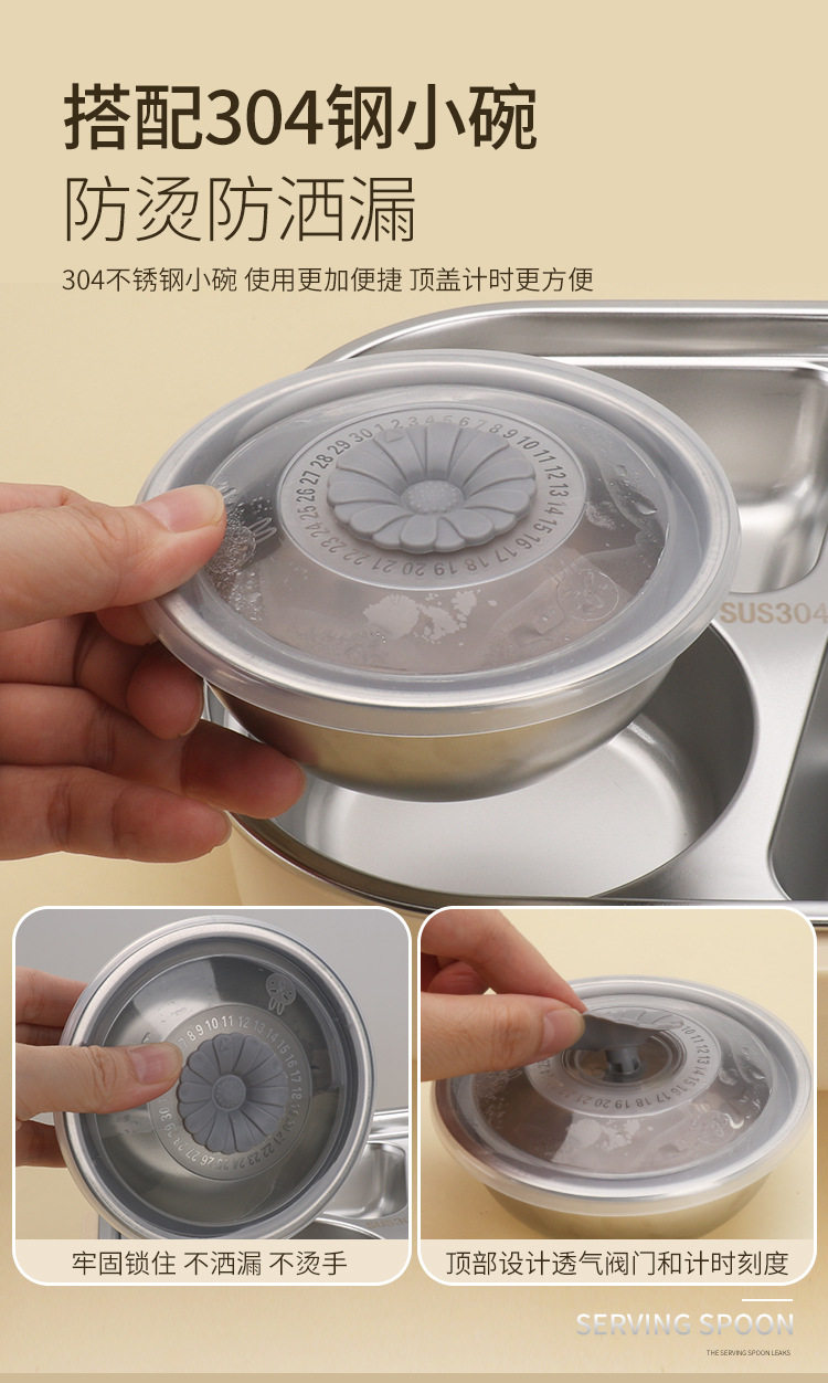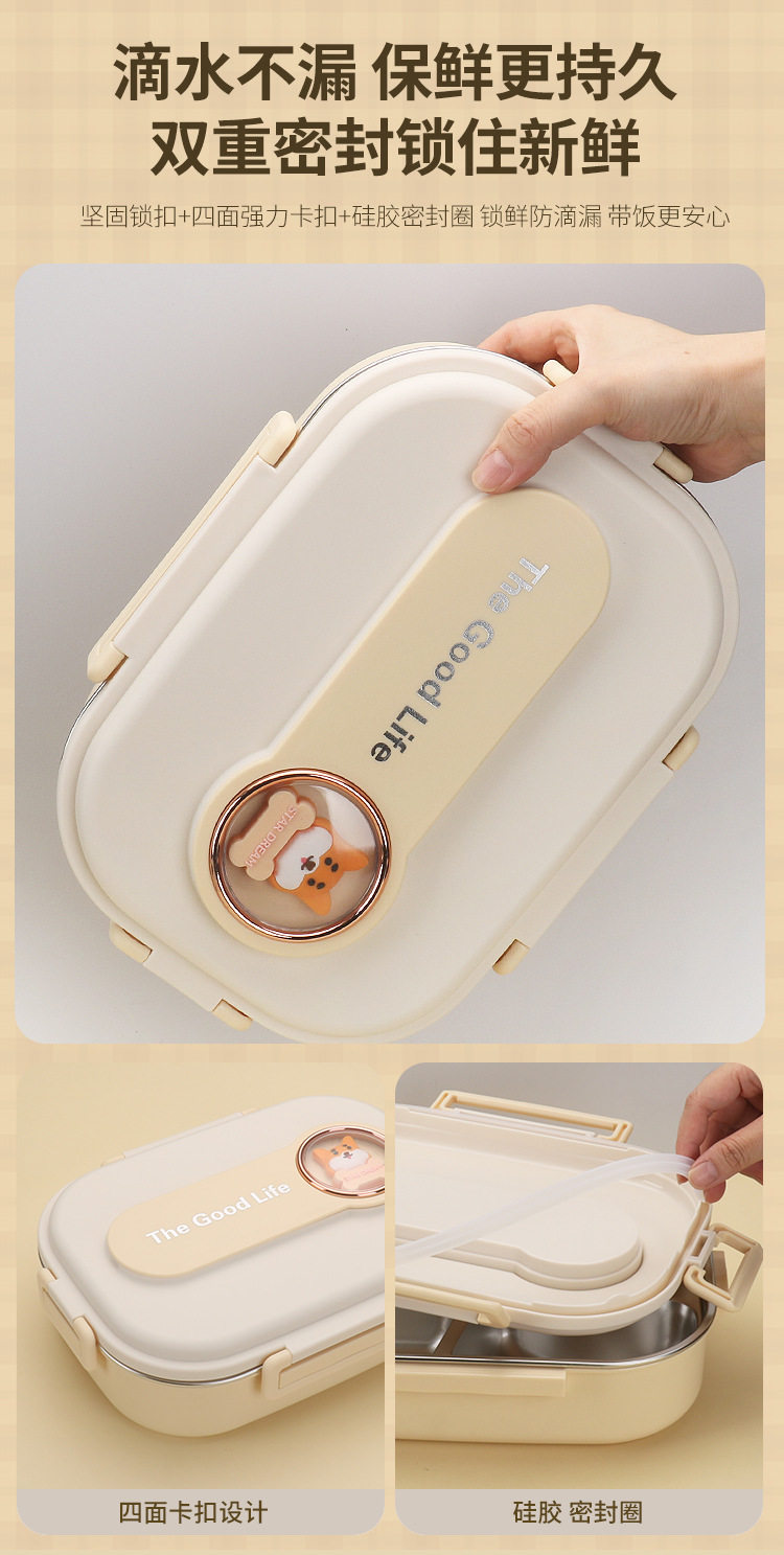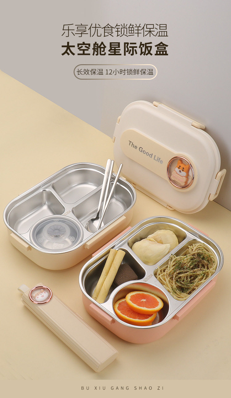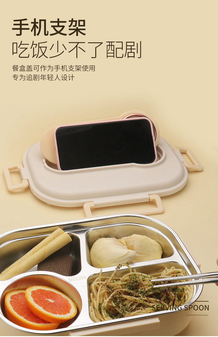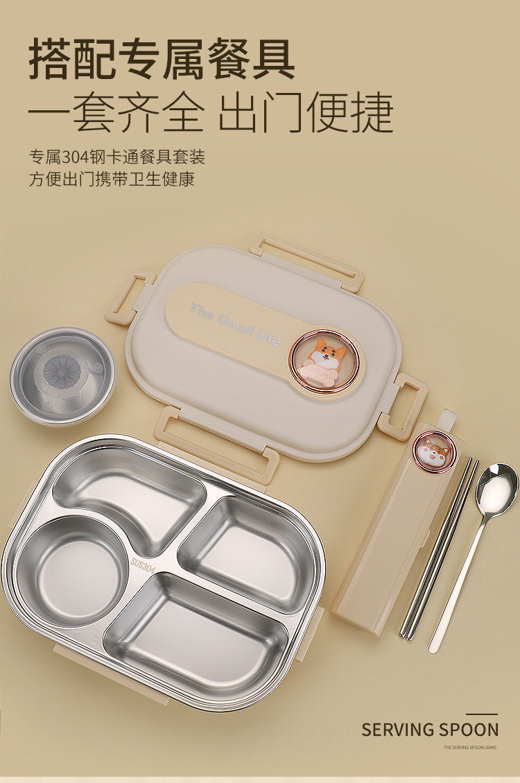 304 Stainless Steel Lunch Box with Soup Bowl Student Office Student Insulated Lunch Box Sealed Square Lunch Lunch Box
