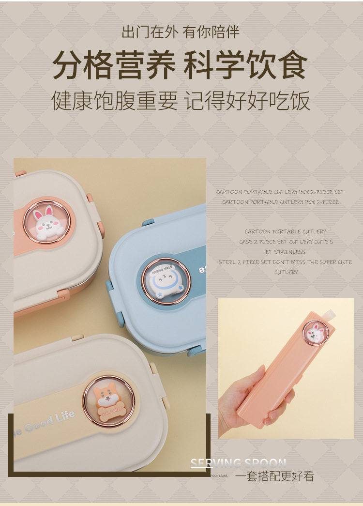 | Specifications | Four grids-ordinary style [pink],Four grids-ordinary style [blue],Four grids-ordinary style [khaki],Four grids - with soup bowl [pink],Four grids - with soup bowl [blue],Four grids - with soup bowl [khaki],Sakura pink rabbit [two-piece set],Latte bear [two-piece set],Cream yellow fuli [two-piece set],Korean no. 2 spoon + chopsticks |