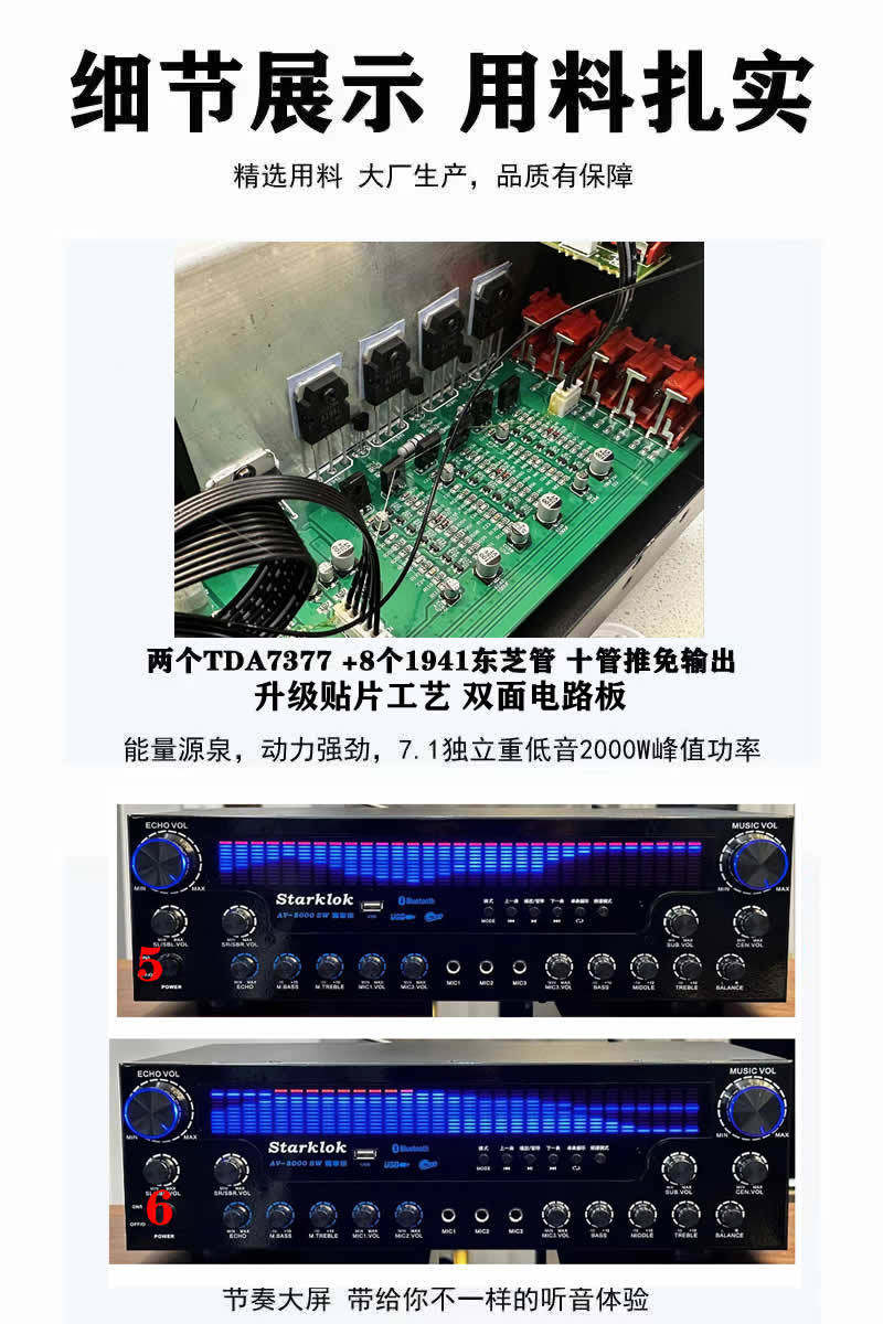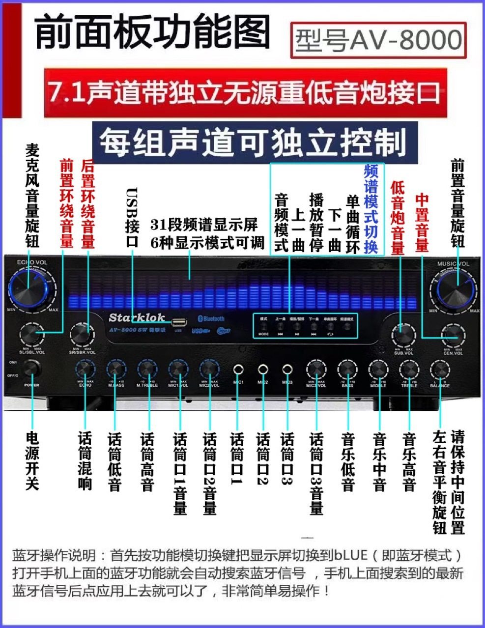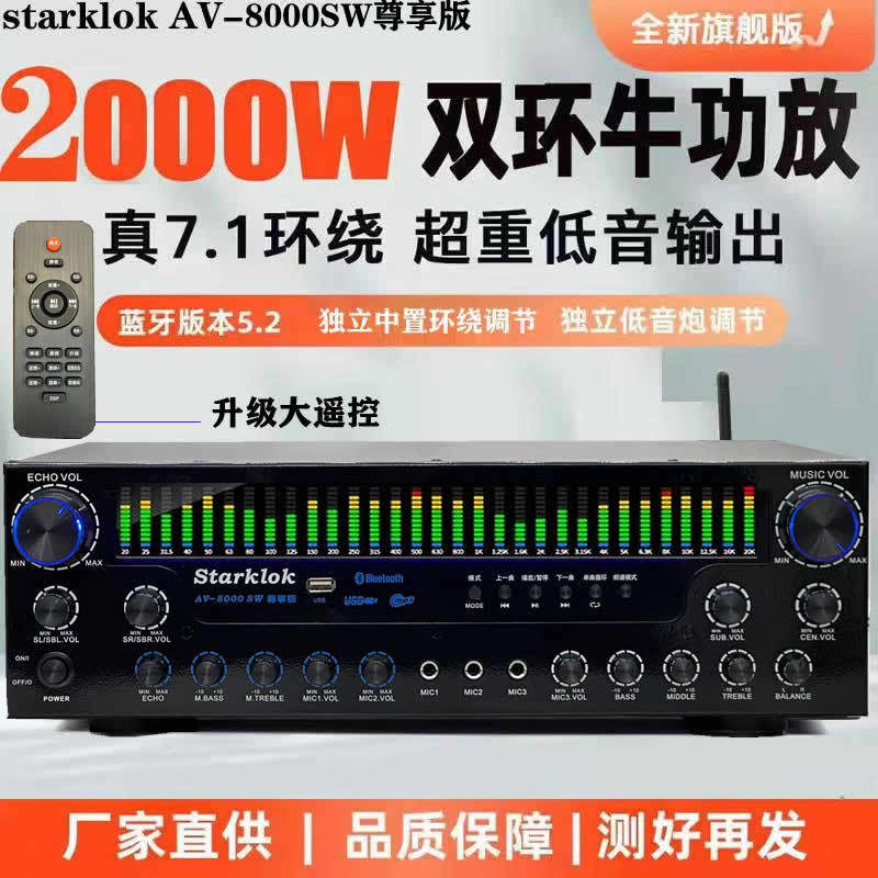 starklokAV-8000SW Premium Edition Professional Super Power 7.1 Channel Home Theater Bluetooth Amplifier