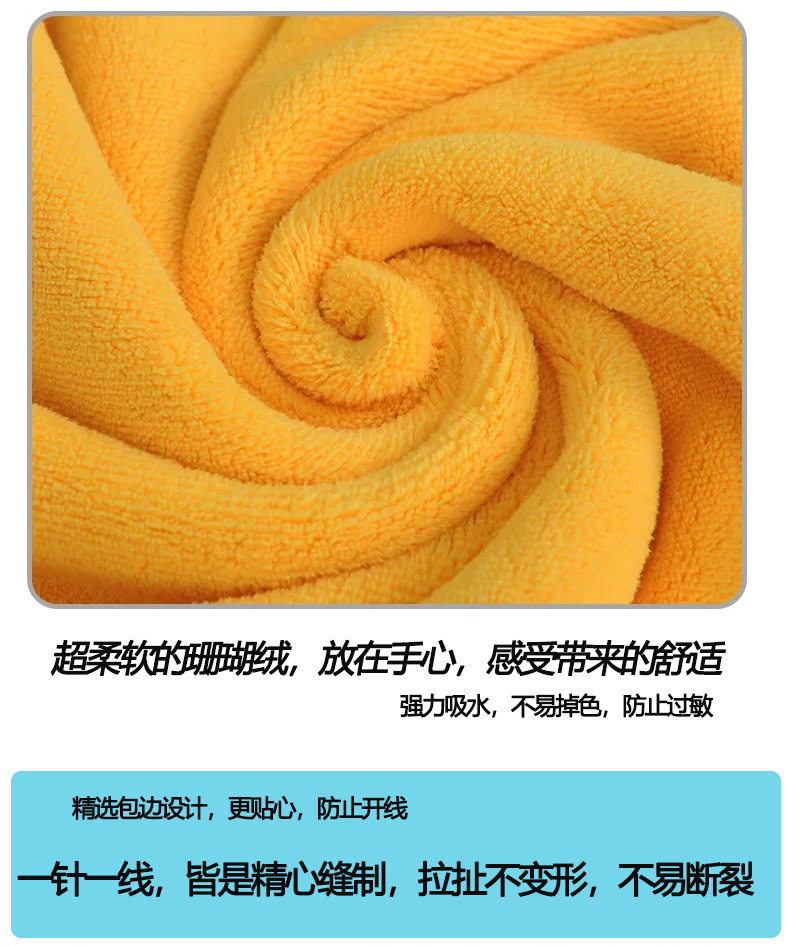 Multifunctional car cleaning car washing towel thickened edge absorbent coral fleece car towel lint-free can be printed LOGO