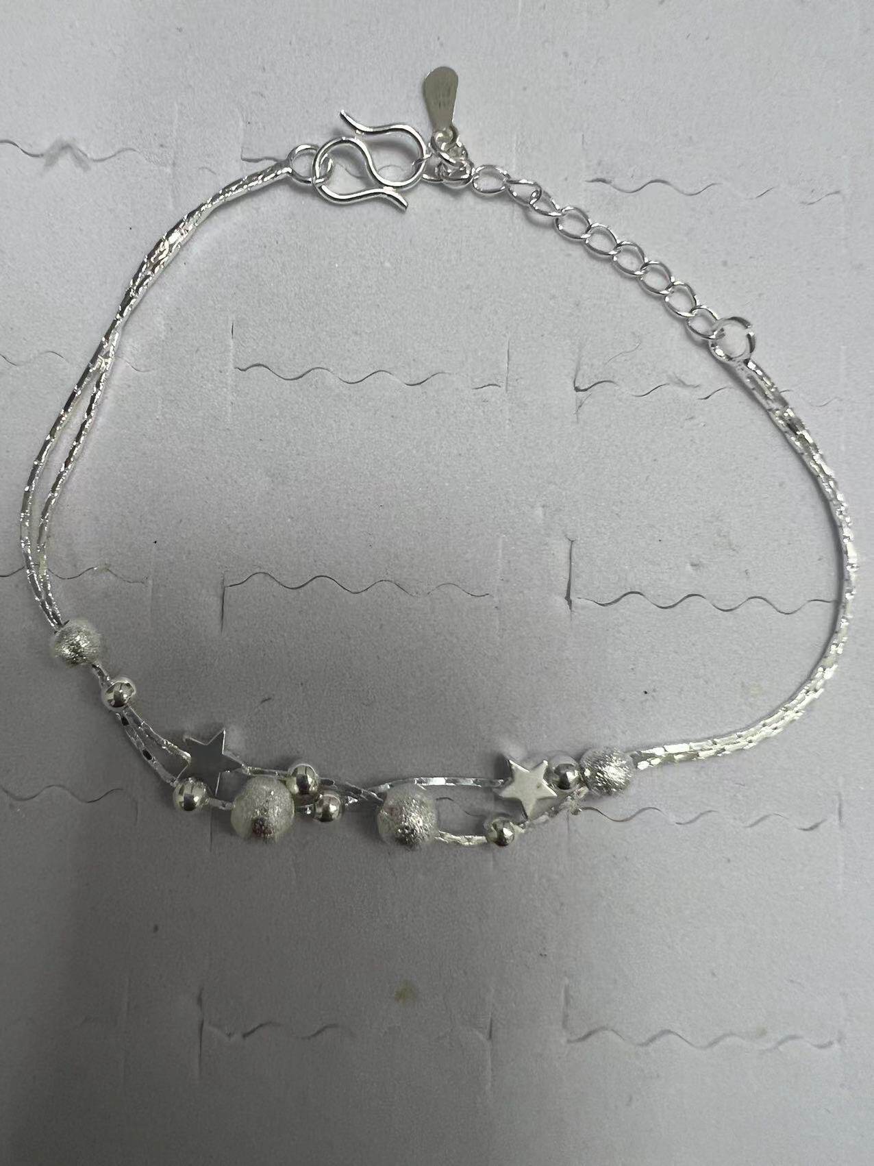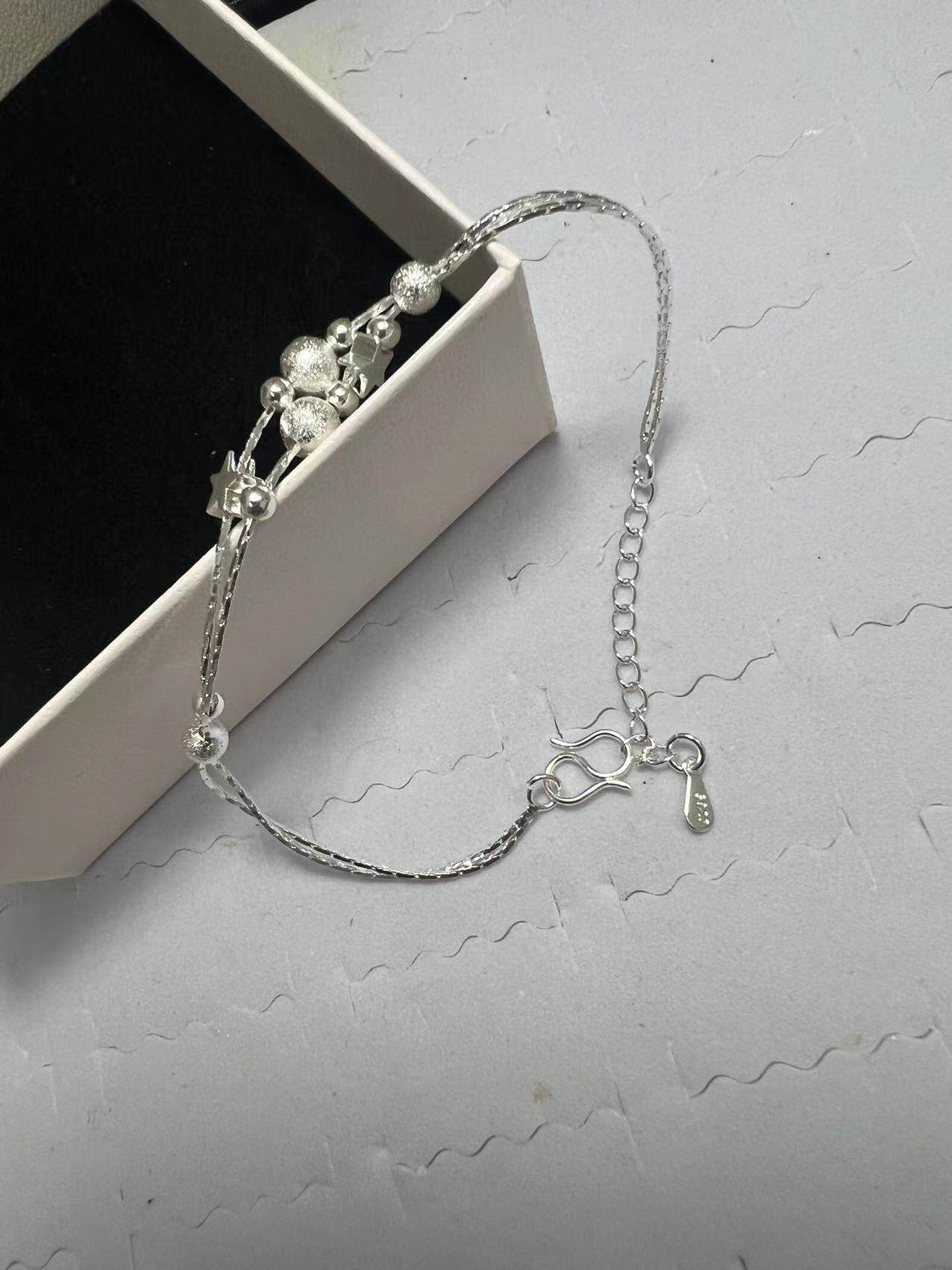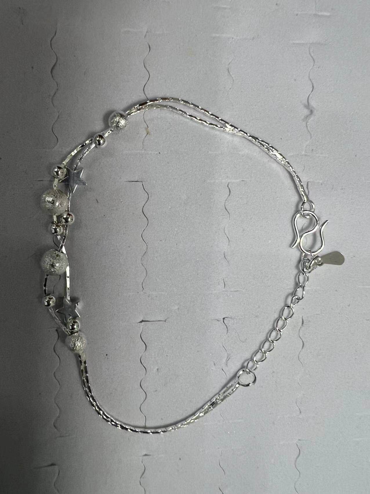 Hand beaded women's silver bracelet Japanese and Korean version of small star jewelry double-layer light sand beads small gift anklet wholesale