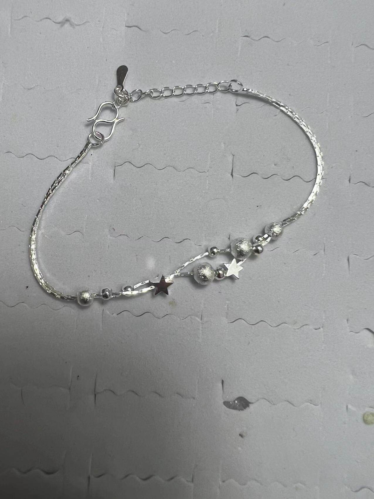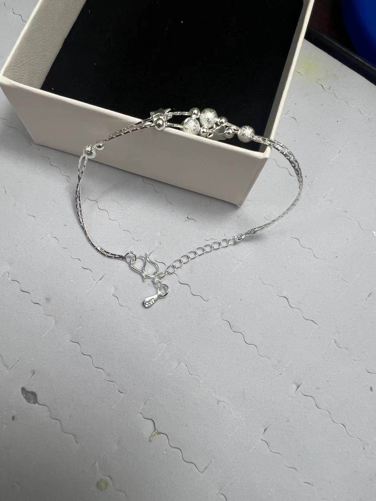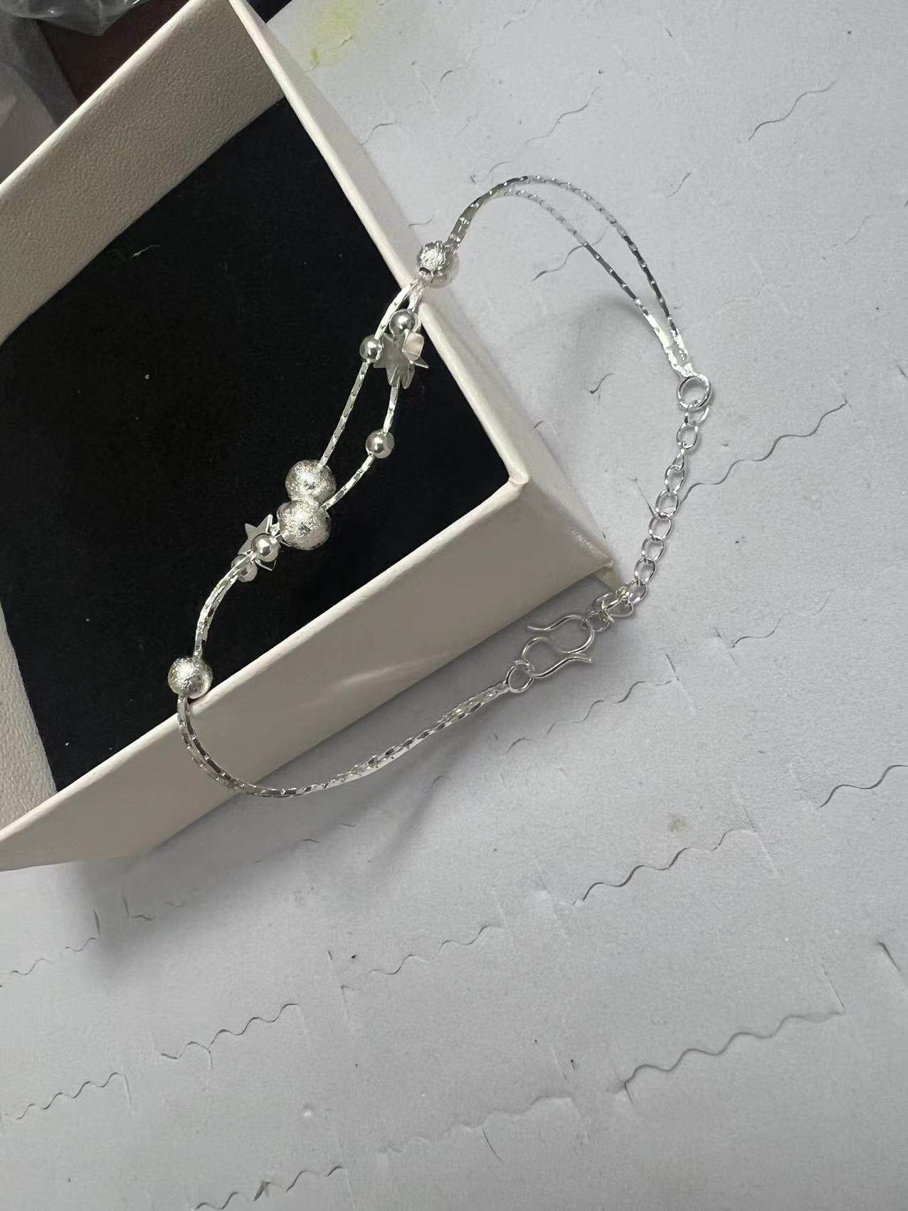 Hand beaded women's silver bracelet Japanese and Korean version of small star jewelry double-layer light sand beads small gift anklet wholesale