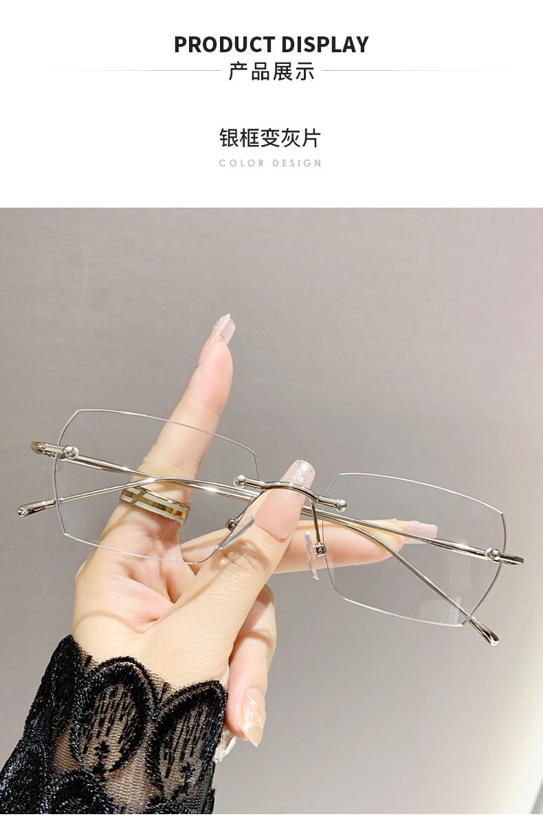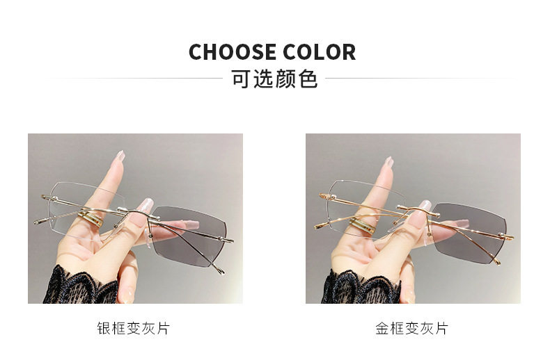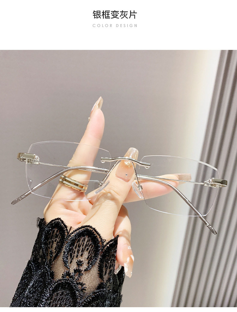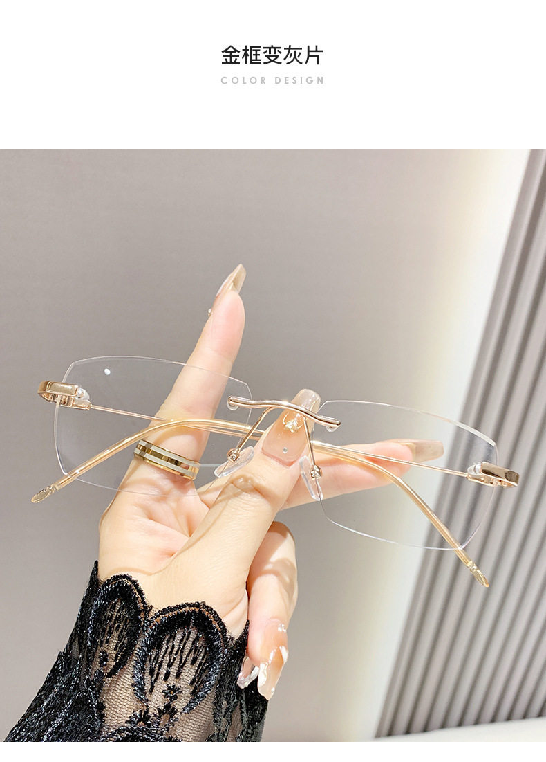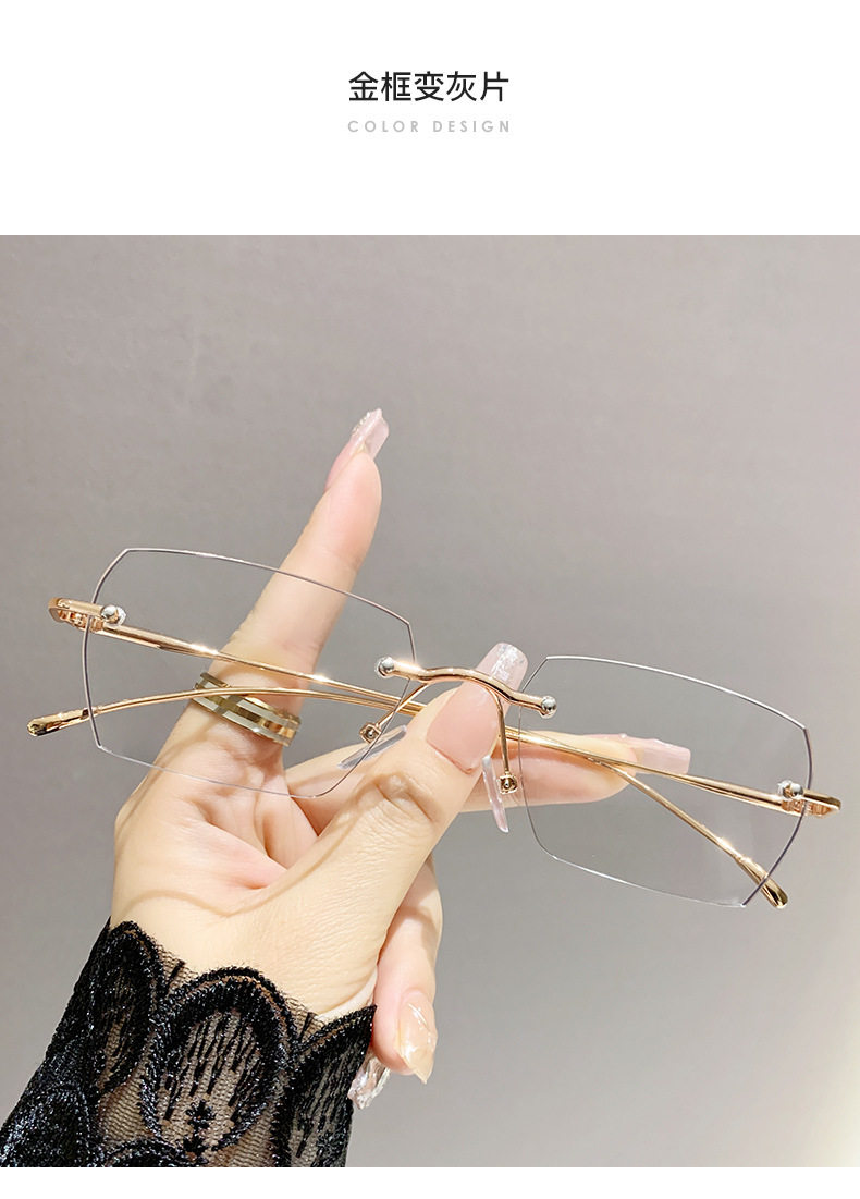 Light-sensitive color-changing rimless myopia glasses can be equipped with anti-blue light pure fashion gold wire rimless eye frame