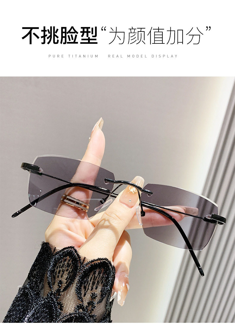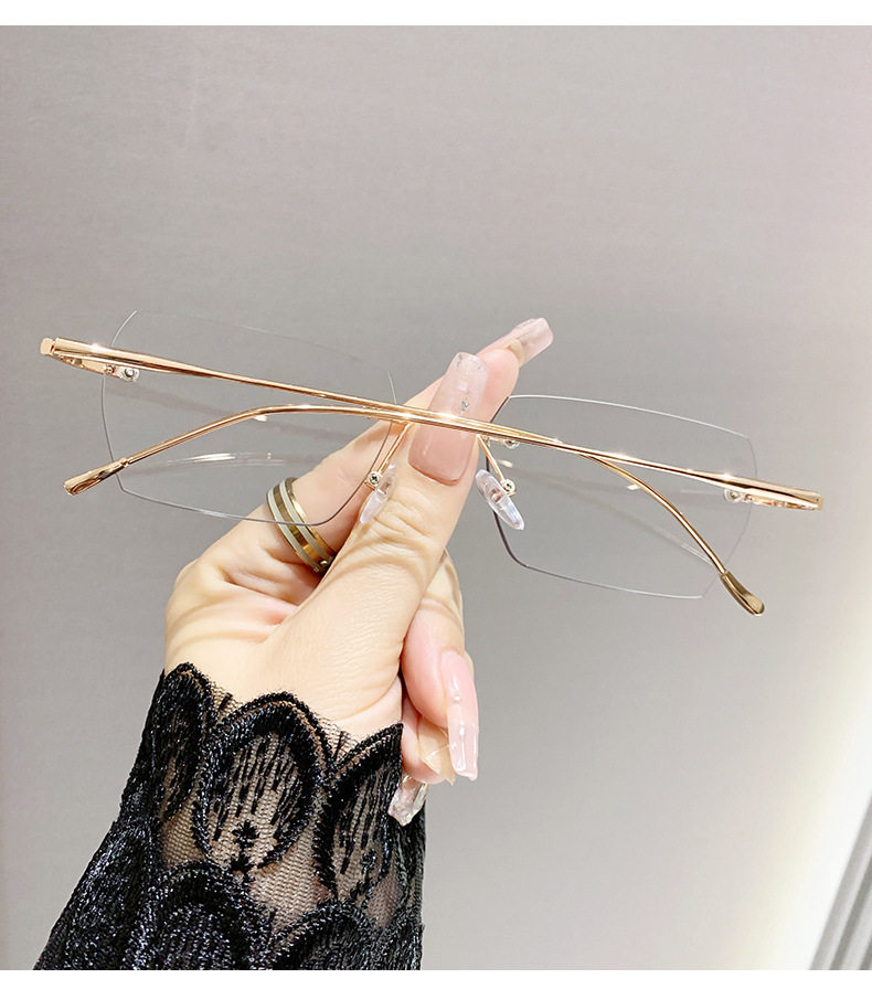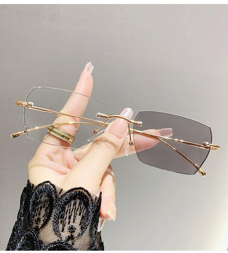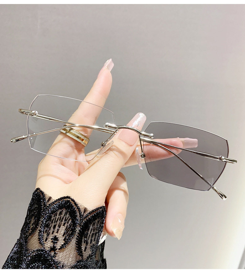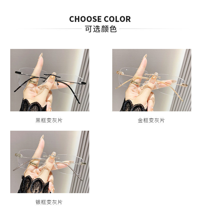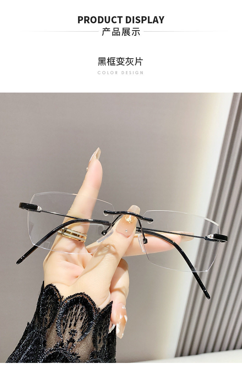 Light-sensitive color-changing rimless myopia glasses can be equipped with anti-blue light pure fashion gold wire rimless eye frame