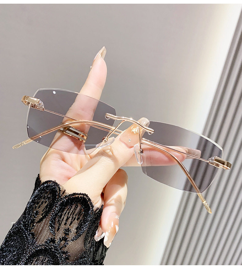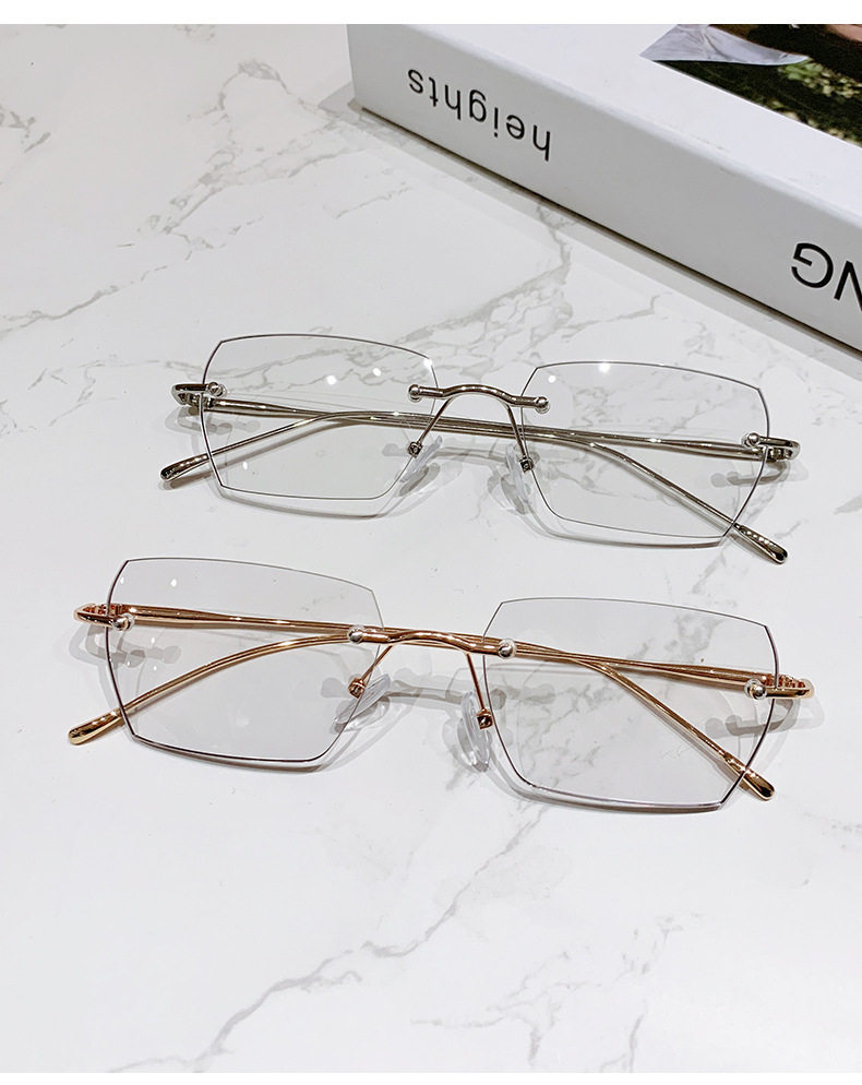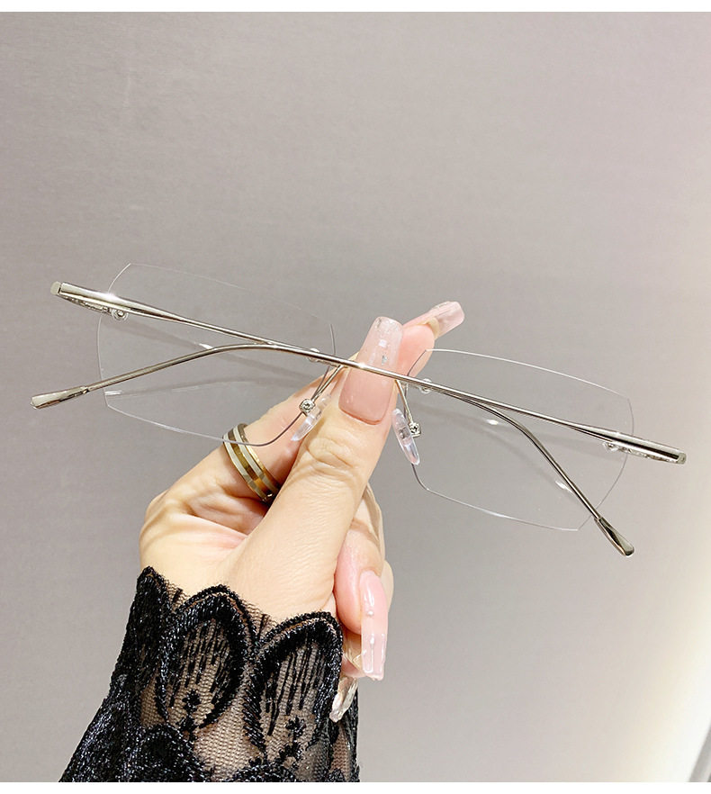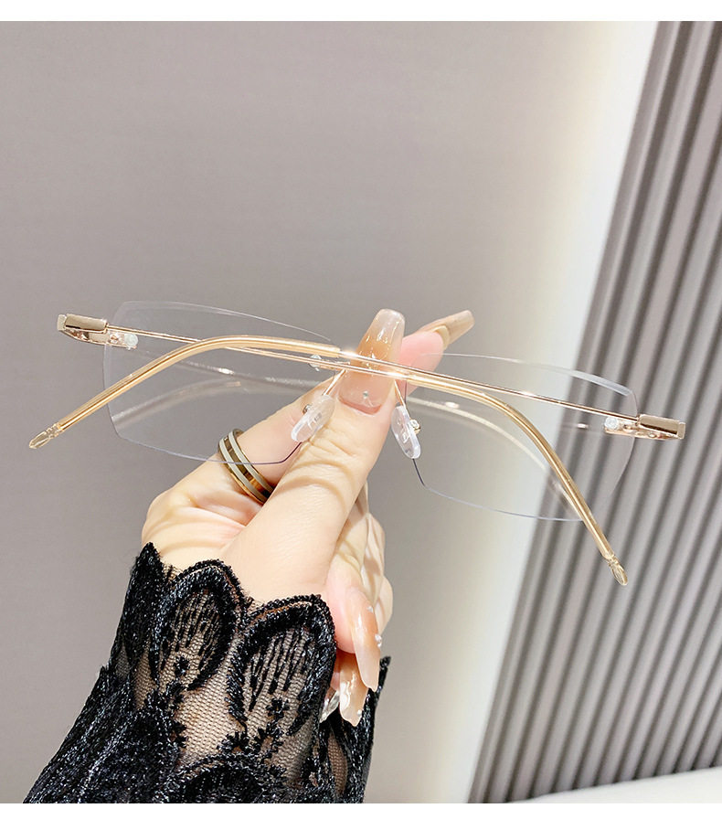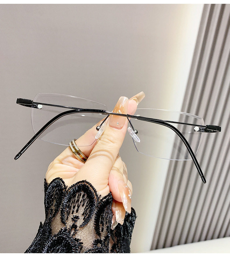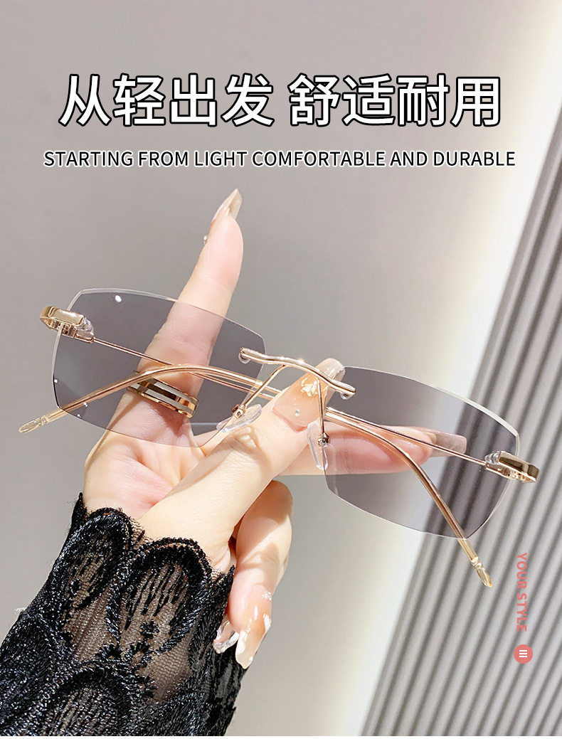Light-sensitive color-changing rimless myopia glasses can be equipped with anti-blue light pure fashion gold wire rimless eye frame