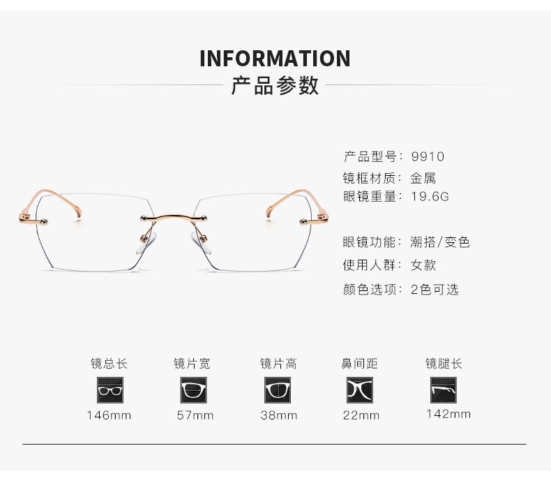 | Frame Color | [3322] black frame,[3322] rose gold,[3322] silver frame,[9910] silver frame,[9910] gold frame |
