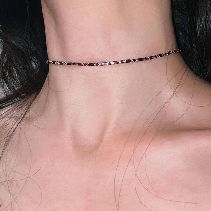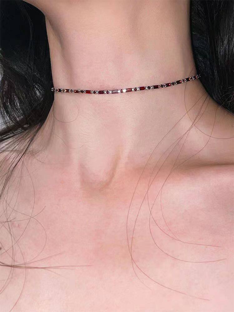 Zircon Necklace Red Necklace Niche Design Sweet Cool High-End Clavicle Chain Adjustable Versatile Retro Necklace for Women