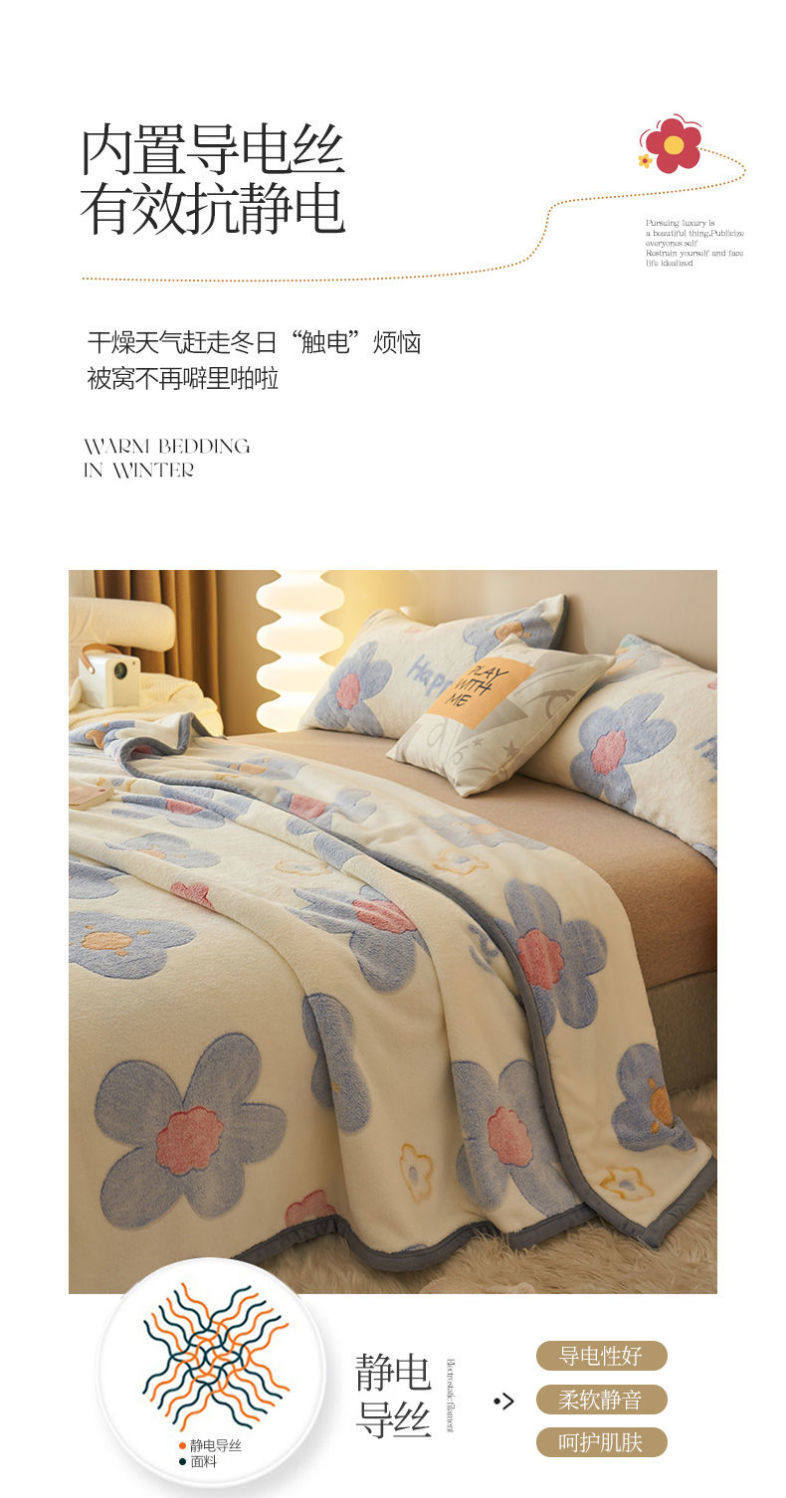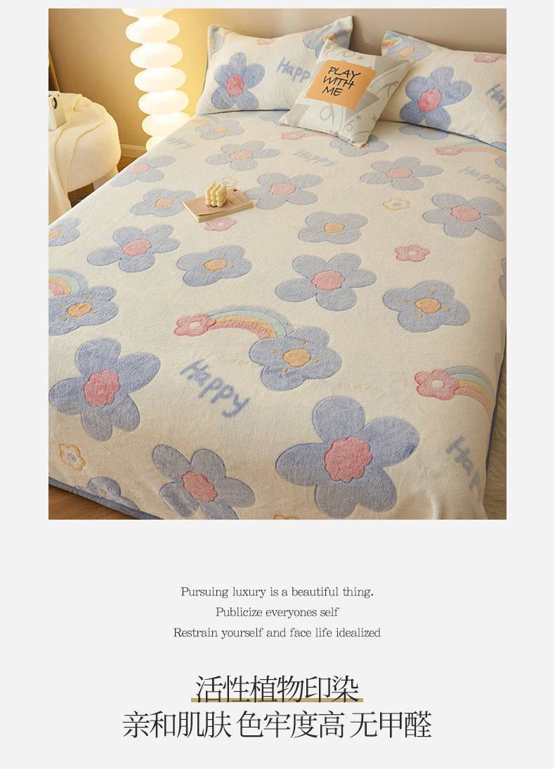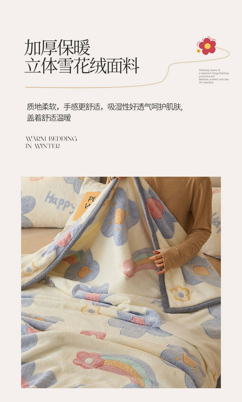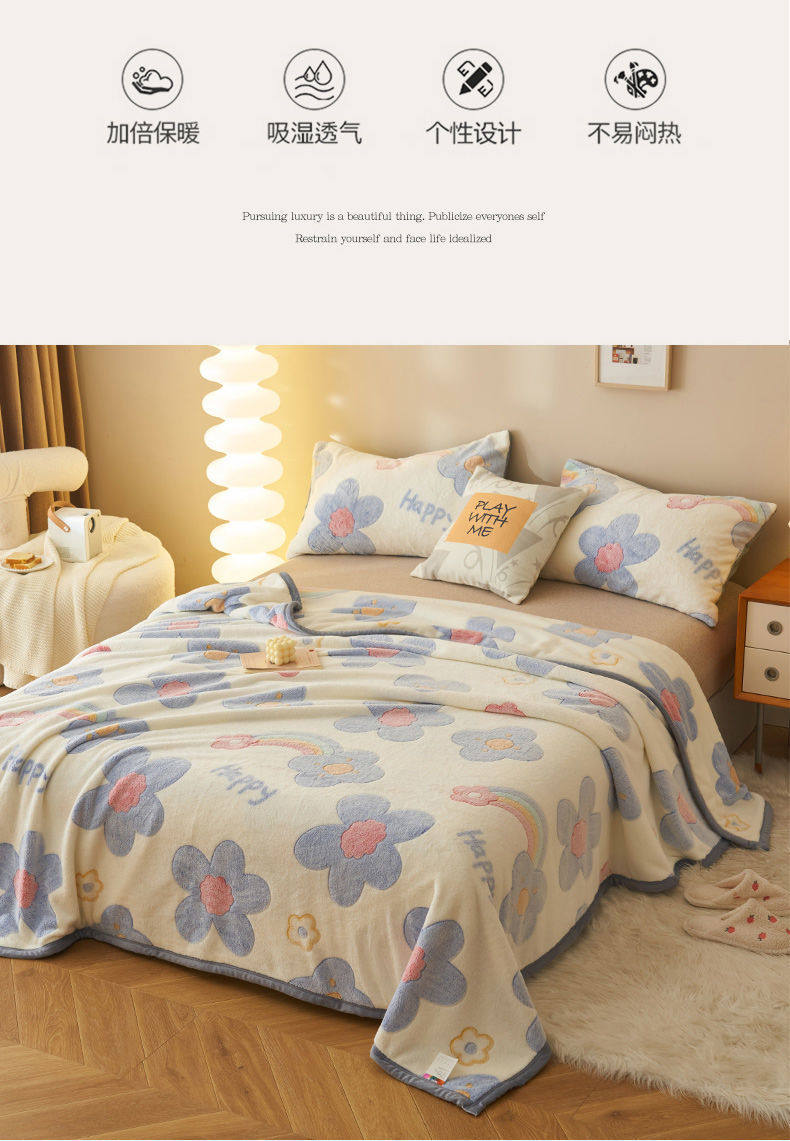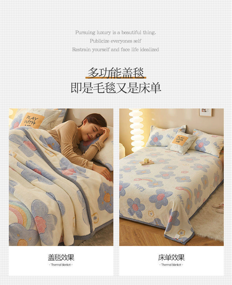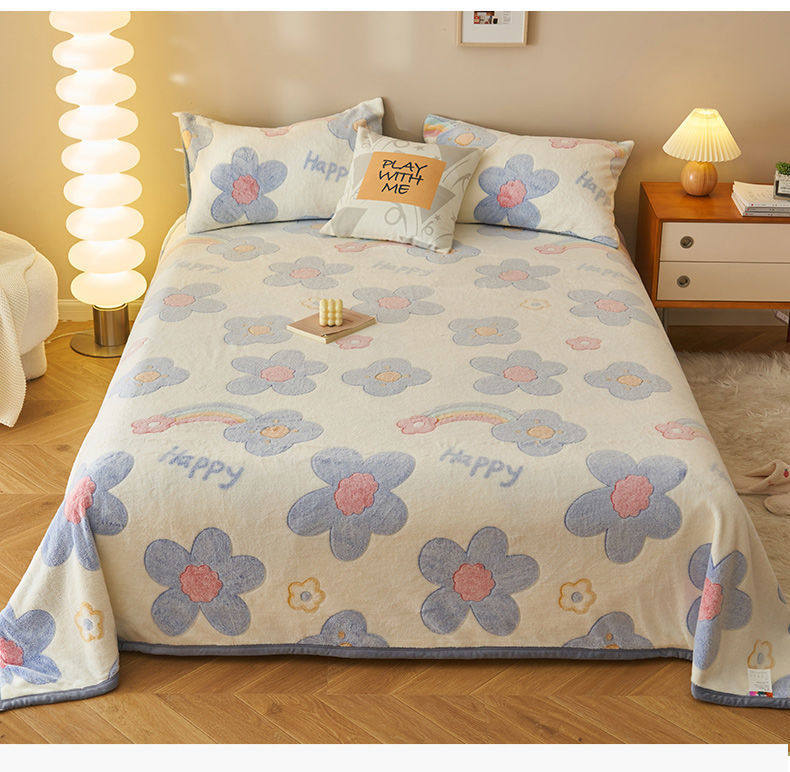 Blanket Spring and Autumn Thickened Warm Coral Fleece Plush Bed Sheet Double Single Nap Cover Blanket Bed Student Dormitory
