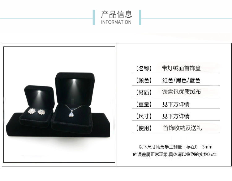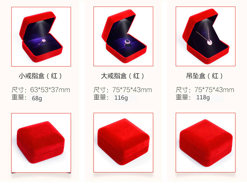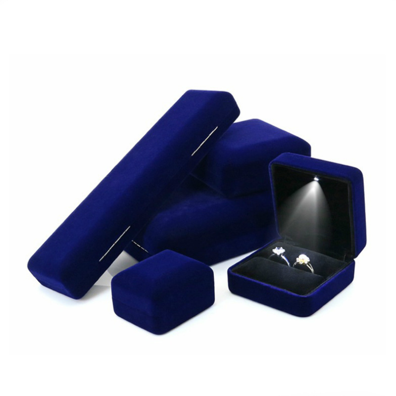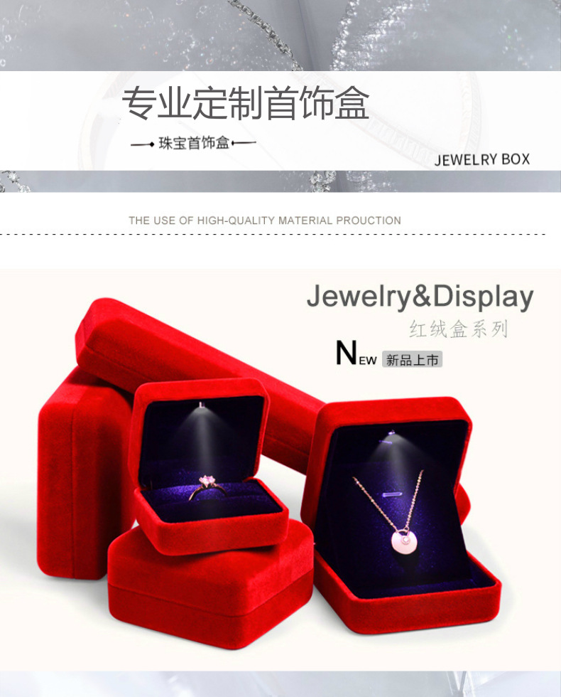 With lamp flannel jewelry box LED lamp iron box ring box pendant bracelet packaging box source factory large quantity discount