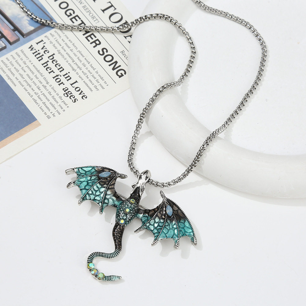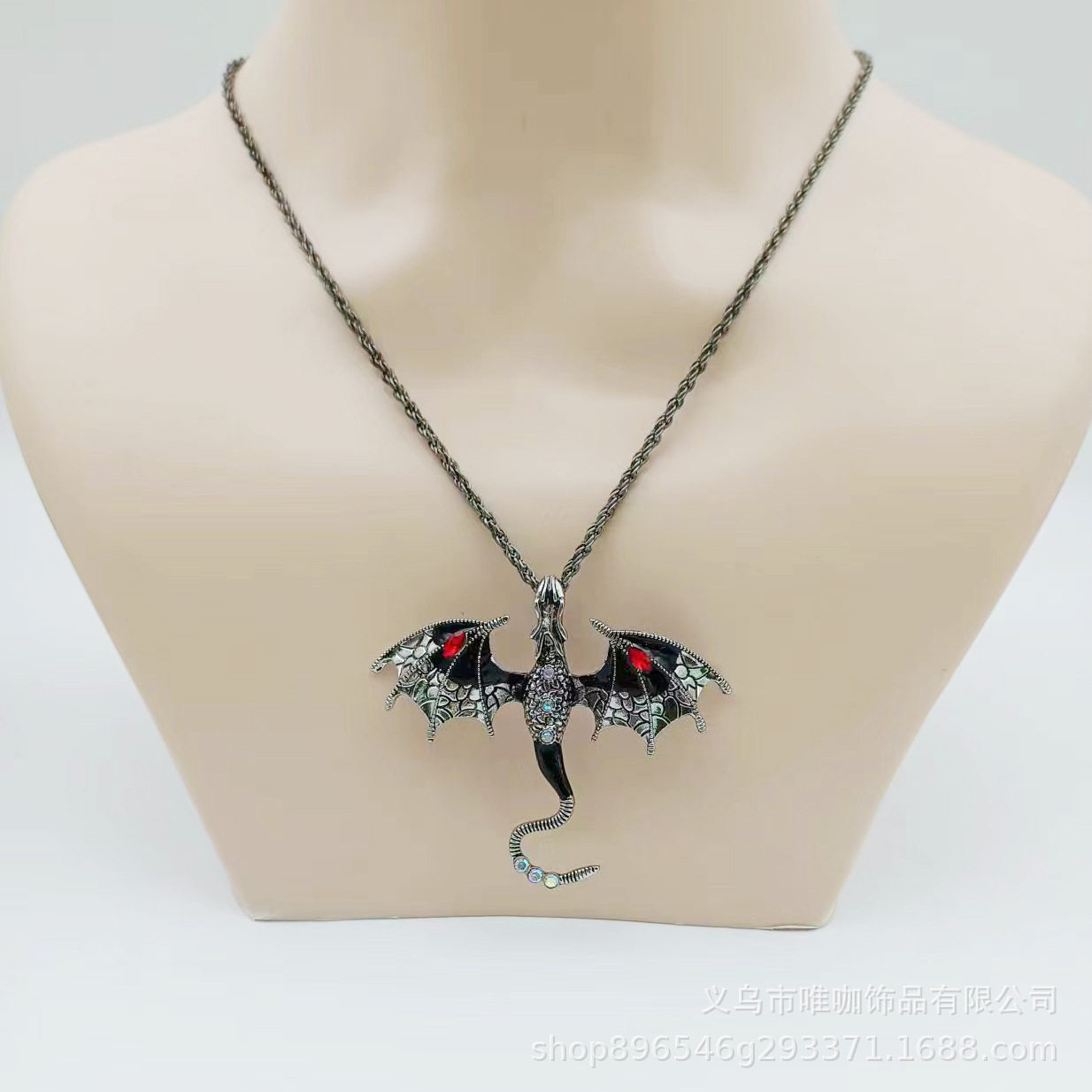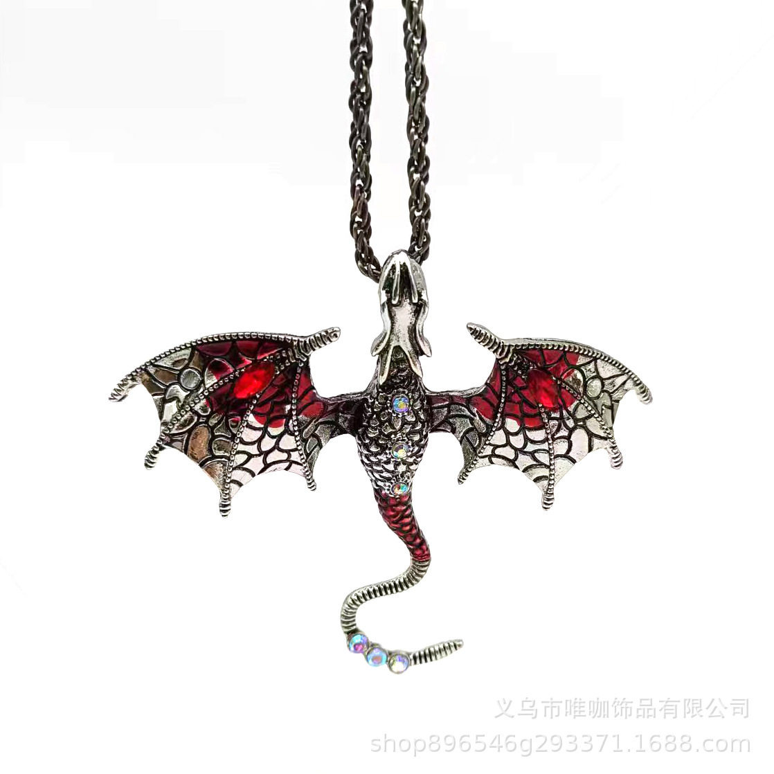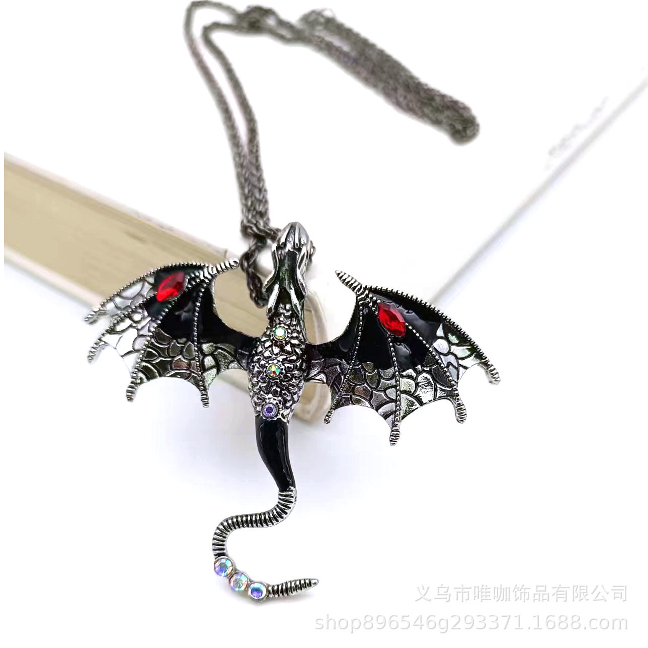 Fashionable Retro Flying Dragon Necklace Dark Exaggerated Hip-Hop Disco Street Style Necklace Punk Style Subculture Sweet and Cool Necklace