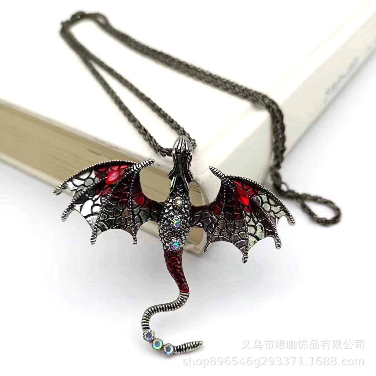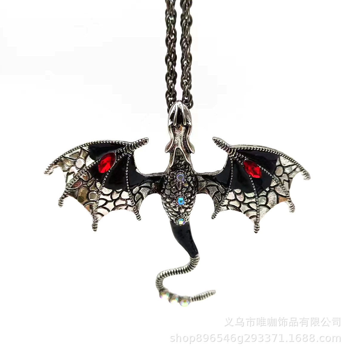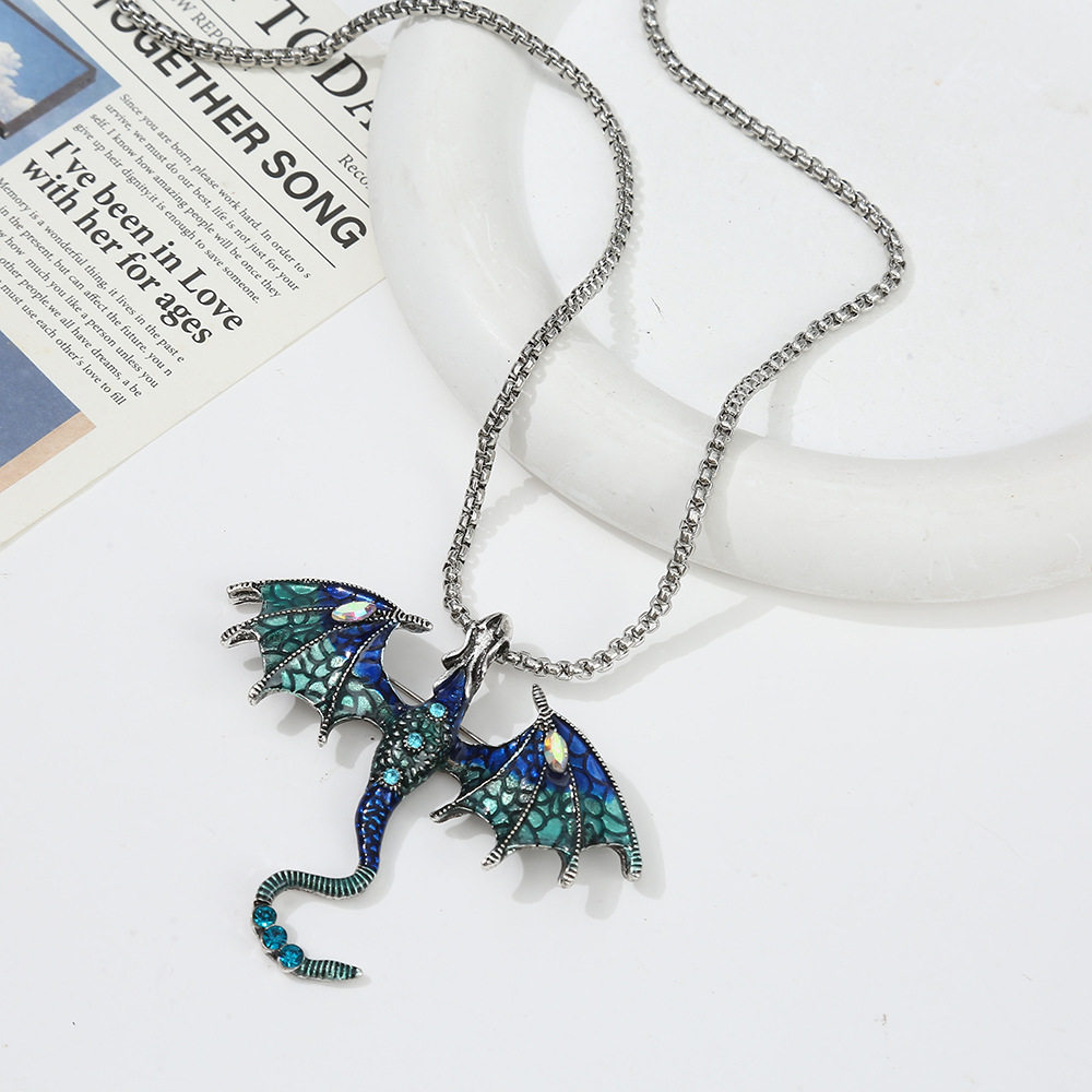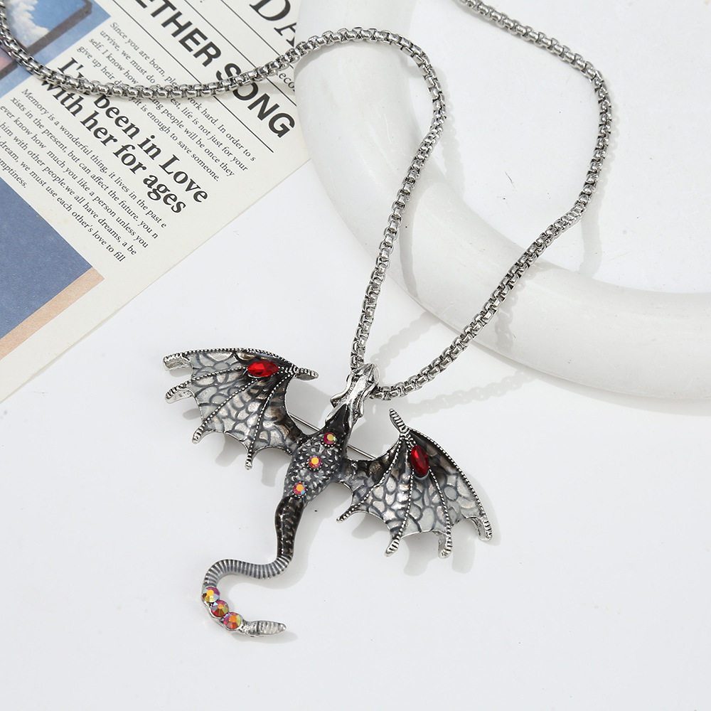 Fashionable Retro Flying Dragon Necklace Dark Exaggerated Hip-Hop Disco Street Style Necklace Punk Style Subculture Sweet and Cool Necklace
