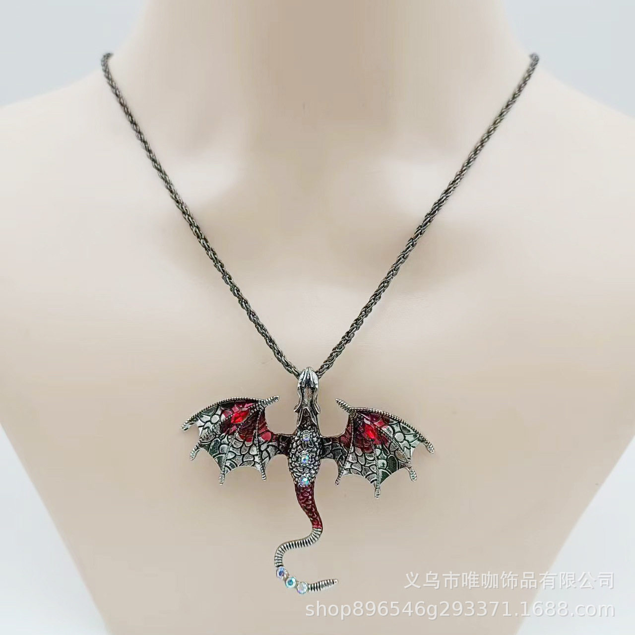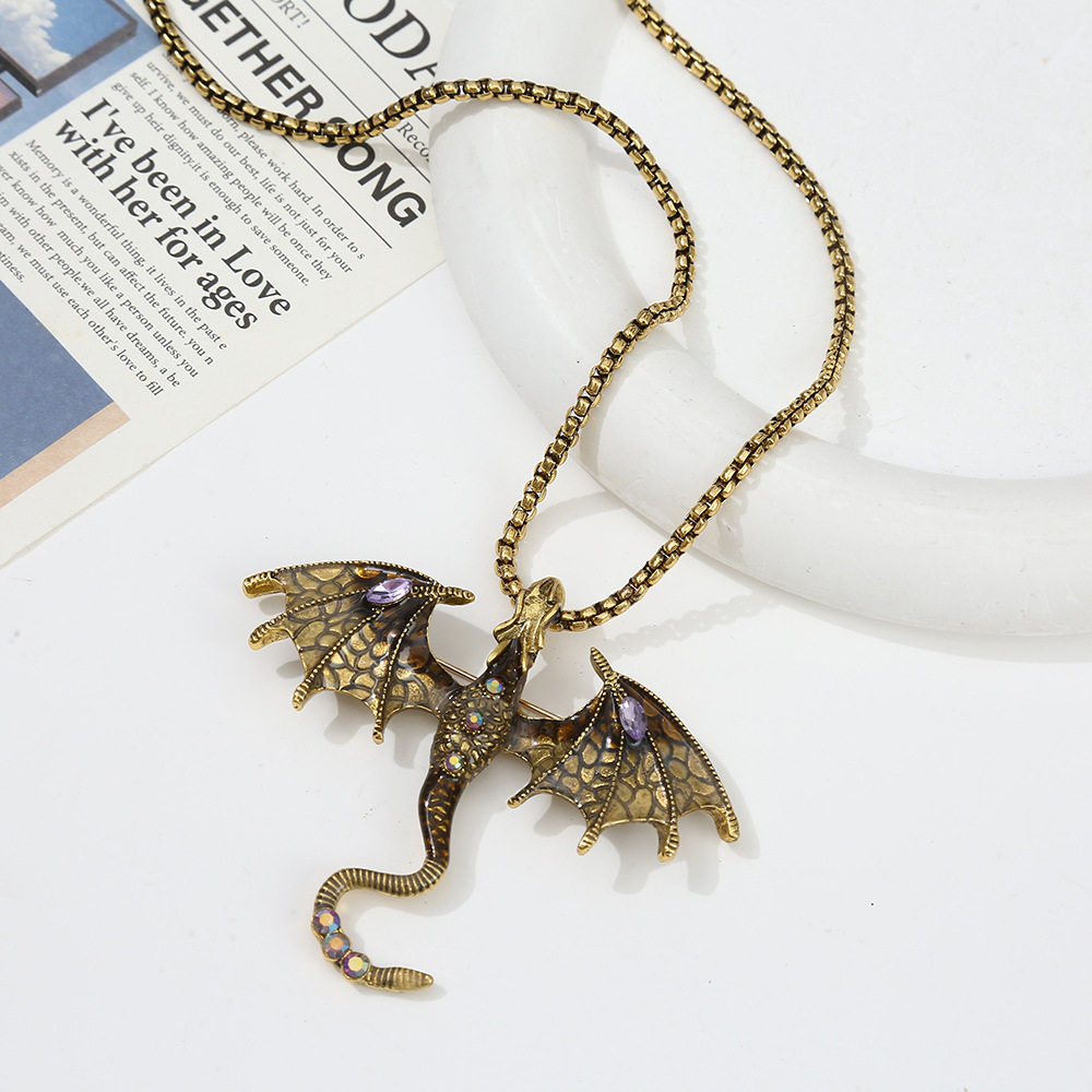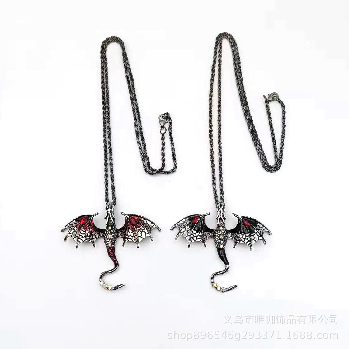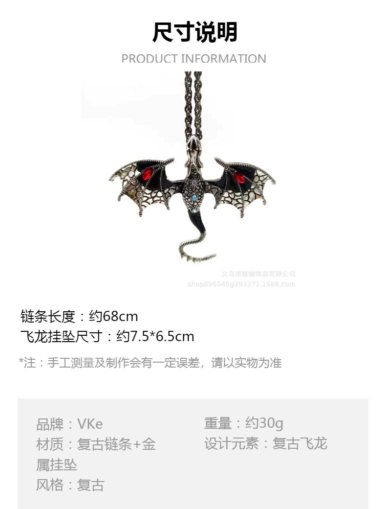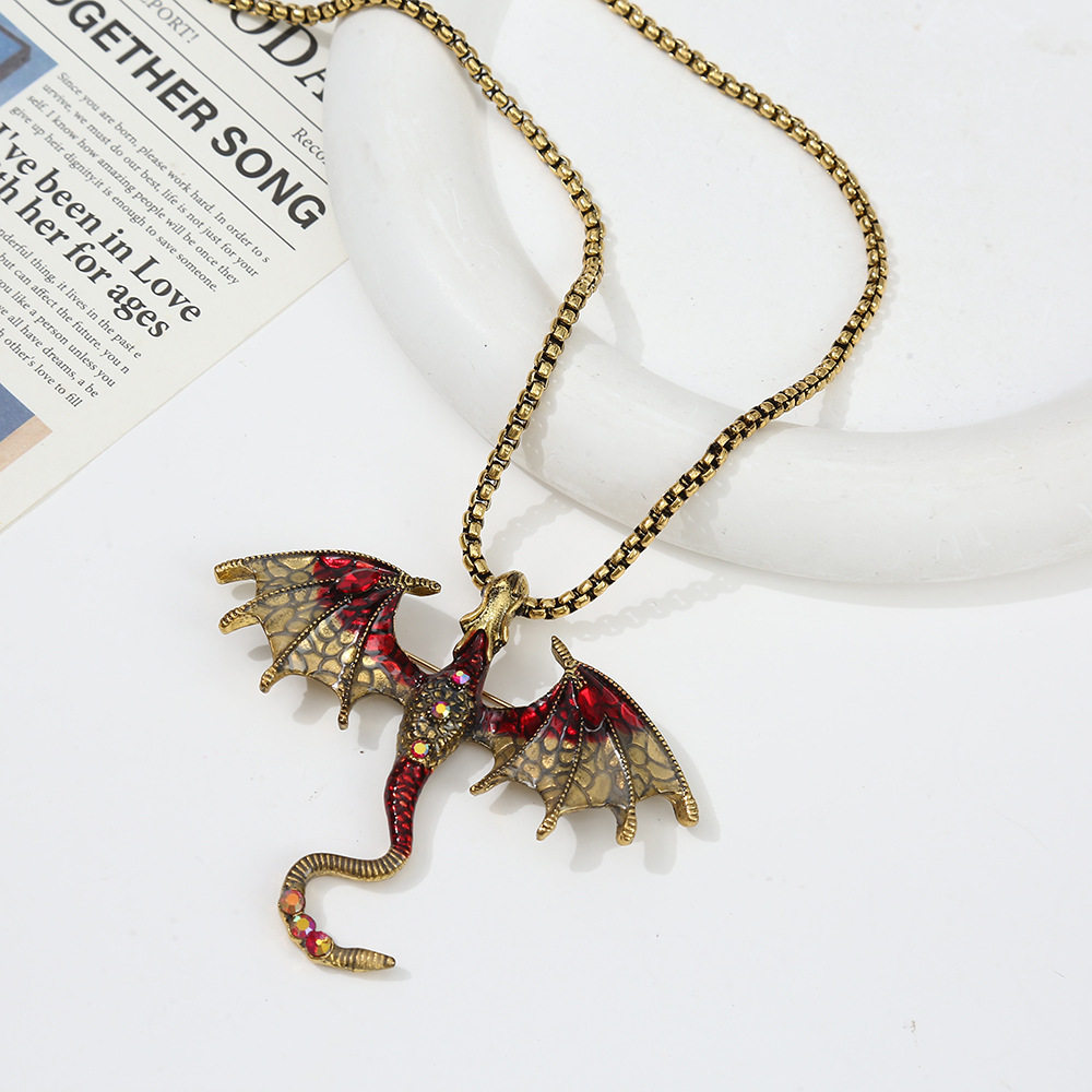 Fashionable Retro Flying Dragon Necklace Dark Exaggerated Hip-Hop Disco Street Style Necklace Punk Style Subculture Sweet and Cool Necklace