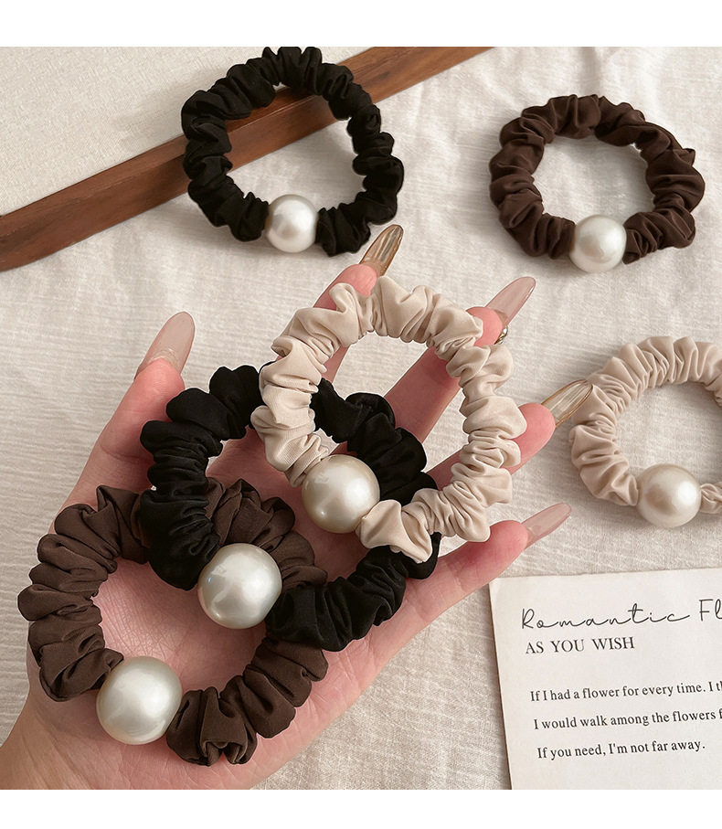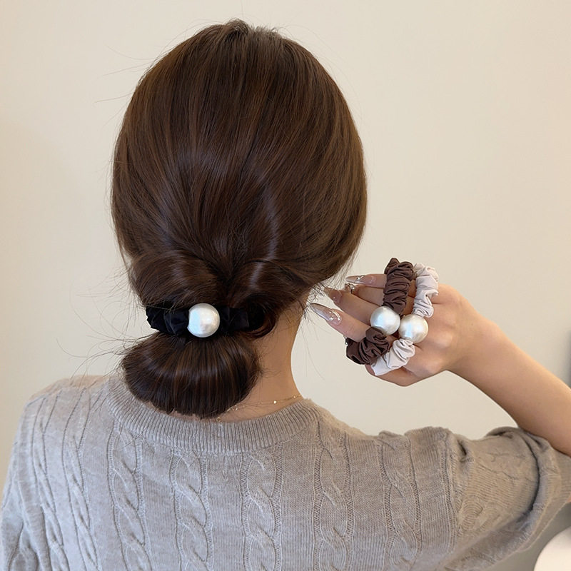 Pearl Satin Large Intestine Hair Loop Hair Rope Women's 2024 New Tie Ball Head Rope Rubber Tendons Advanced Sense Hair Rope Hair Accessories