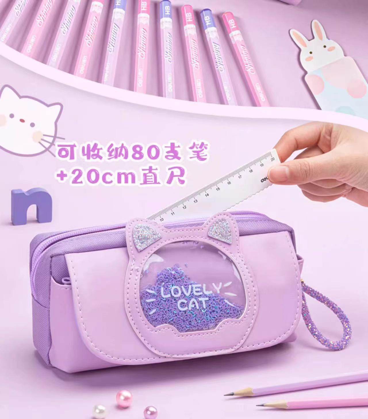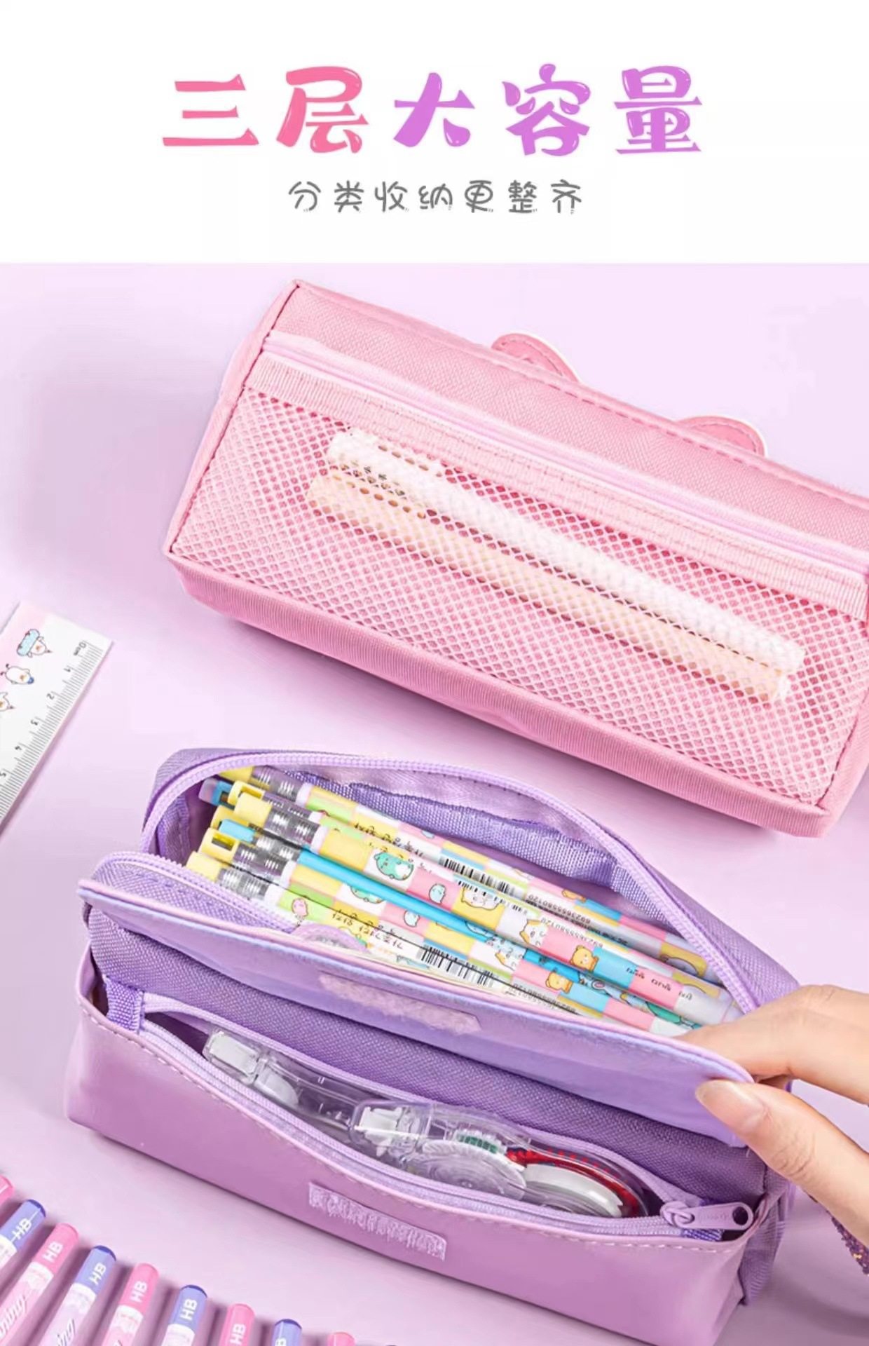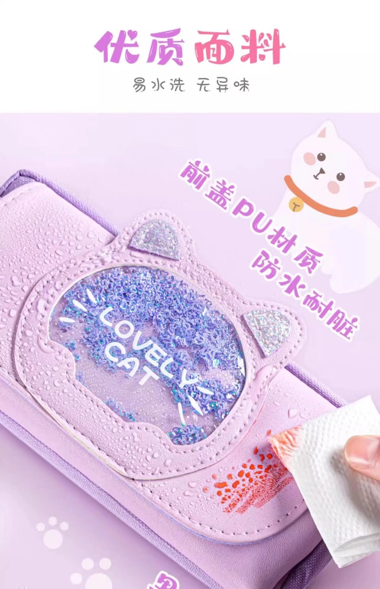 Ins High-value Pencil Bag Large Capacity Dirty-resistant Cute Cartoon Pencil Stationery Box High-level Stationery Bag for Primary School Students