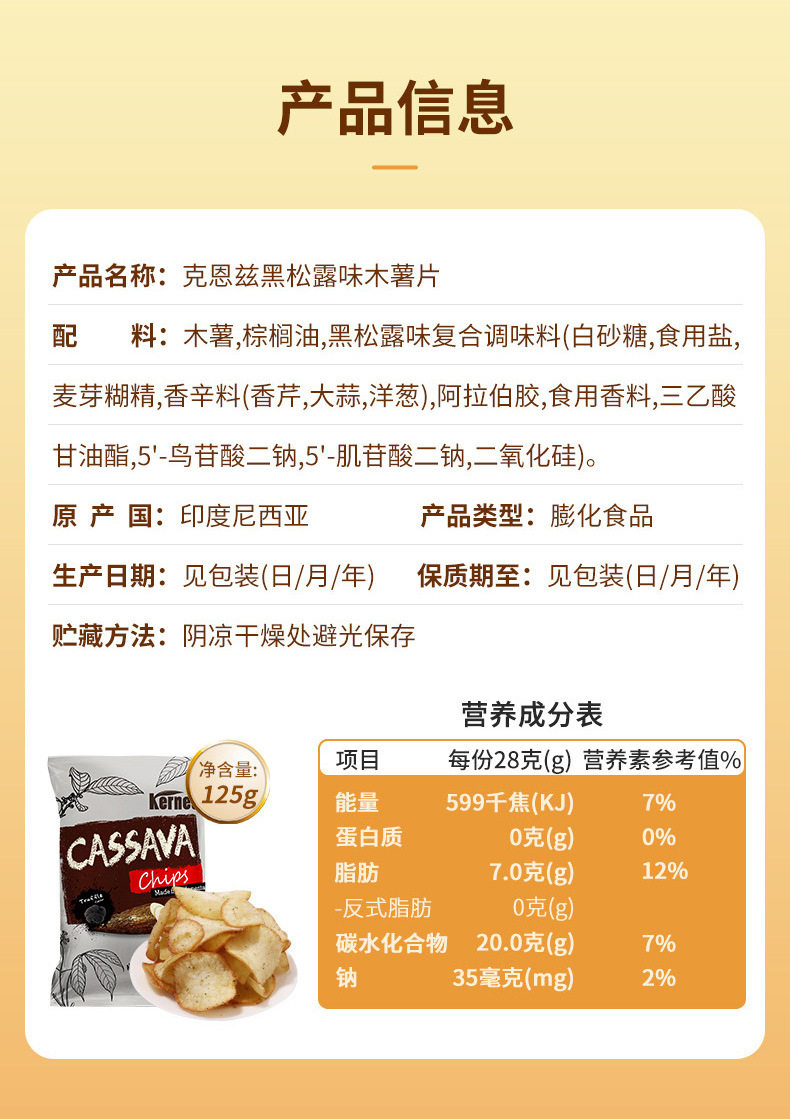 | Packaging specifications | Original flavor 125g,Bbq flavor 125g,Honey butter flavor 125g,Black truffle flavor 125g,Salted egg yolk flavor 125g,Black pepper flavor 125g,Cheese flavor 125g,Curry flavor 125g,Spicy 125g |