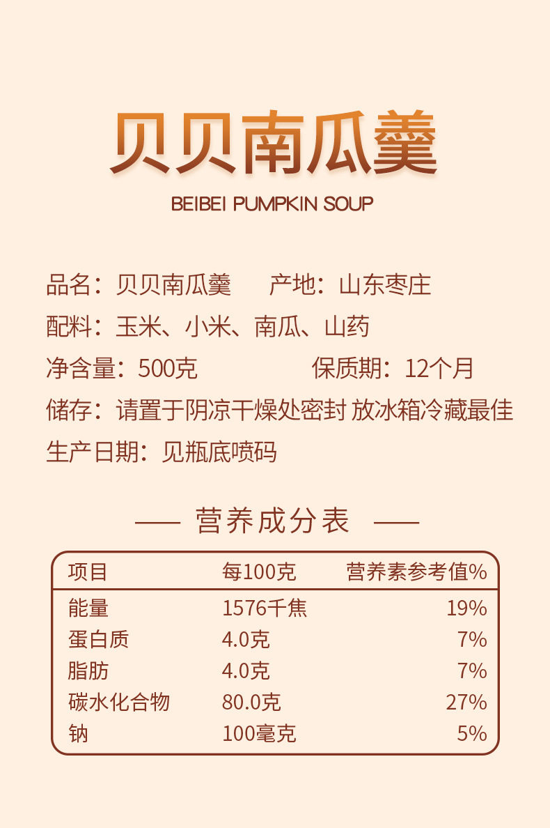 Beibei Pumpkin Soup 500G/Can, Delicate, Soft and Glutinous, Mellow, No-Cook Breakfast Nutritional Meal Replacement Powder, Direct from the Manufacturer