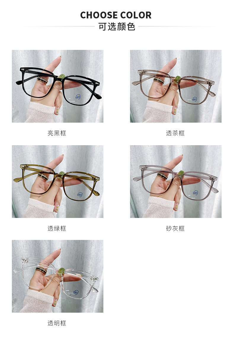 | Lens color | Pc frame flat sheet,Pc frame anti-blue light,Pc myopia 100 degrees,Pc myopia 150 degrees,Pc myopia 200 degrees,Pc myopia 250 degrees,Pc myopia 300 degrees,Pc myopia 350 degrees,Pc myopia 400 degrees,Pc myopia 450 degrees,Pc myopia 500 degrees,Pc myopia 550 degrees,Pc myopia 600 degrees,Empty frame (without lens) |