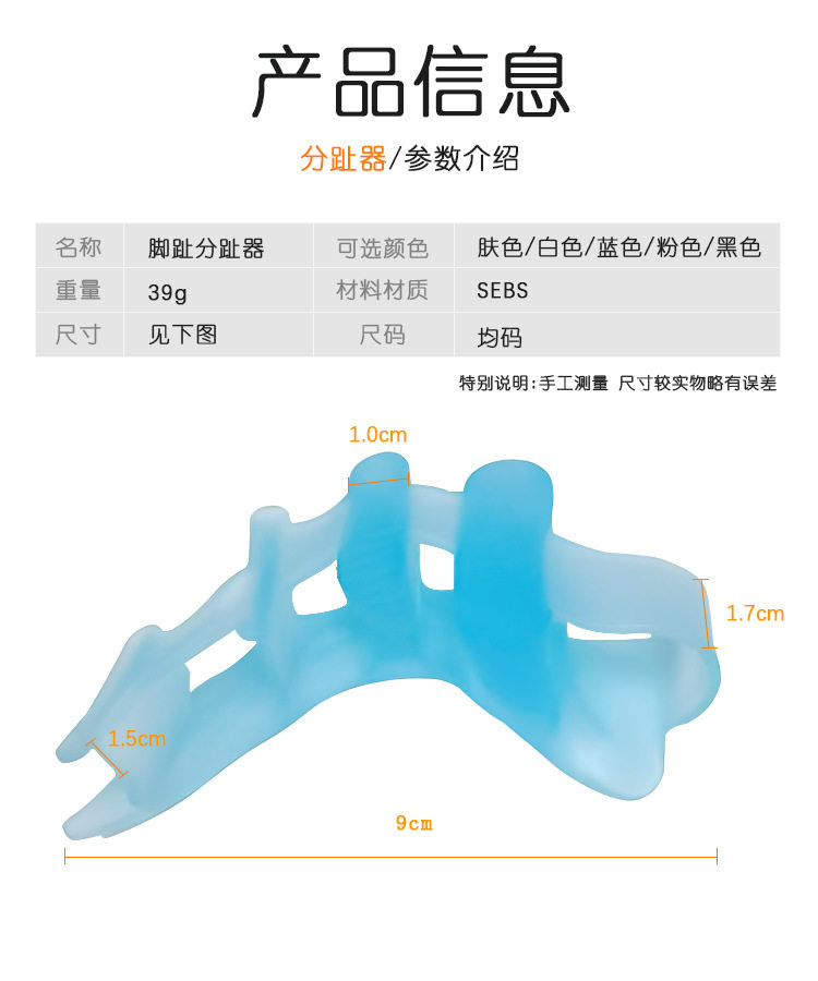 | Color | Bridge-shaped four-hole toe separator blue,Bridge-shaped four-hole toe separator pink,Bridge-shaped four-hole toe separator white,Bridge-shaped four-hole toe separator skin color,Bridge-shaped four-hole toe separator black |