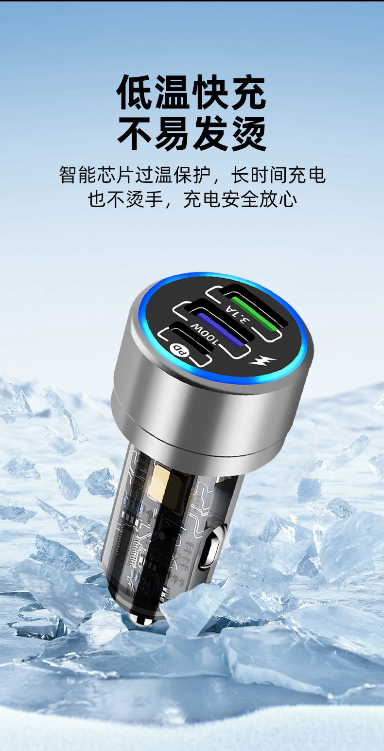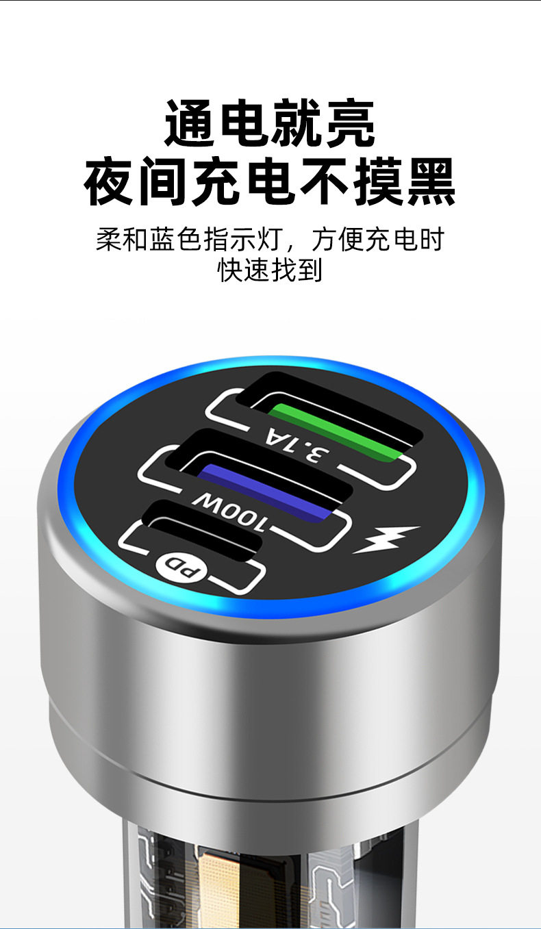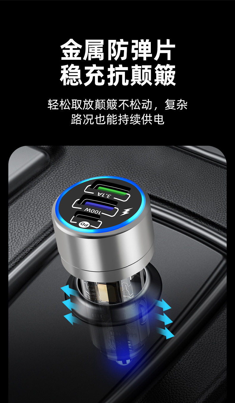 Car Charger 100w Super Fast Charger Car Phone Charger Aluminum Alloy PD QC3.0 Car Charger