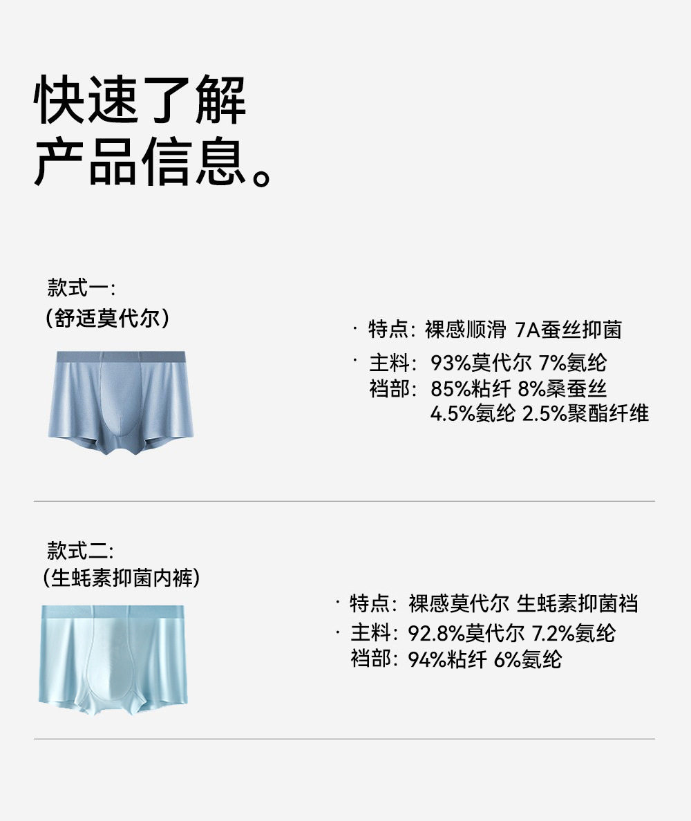 80 modal men's underwear 7A bacteriostatic crotch seamless breathable boxers mulberry silk crotch men's boxers