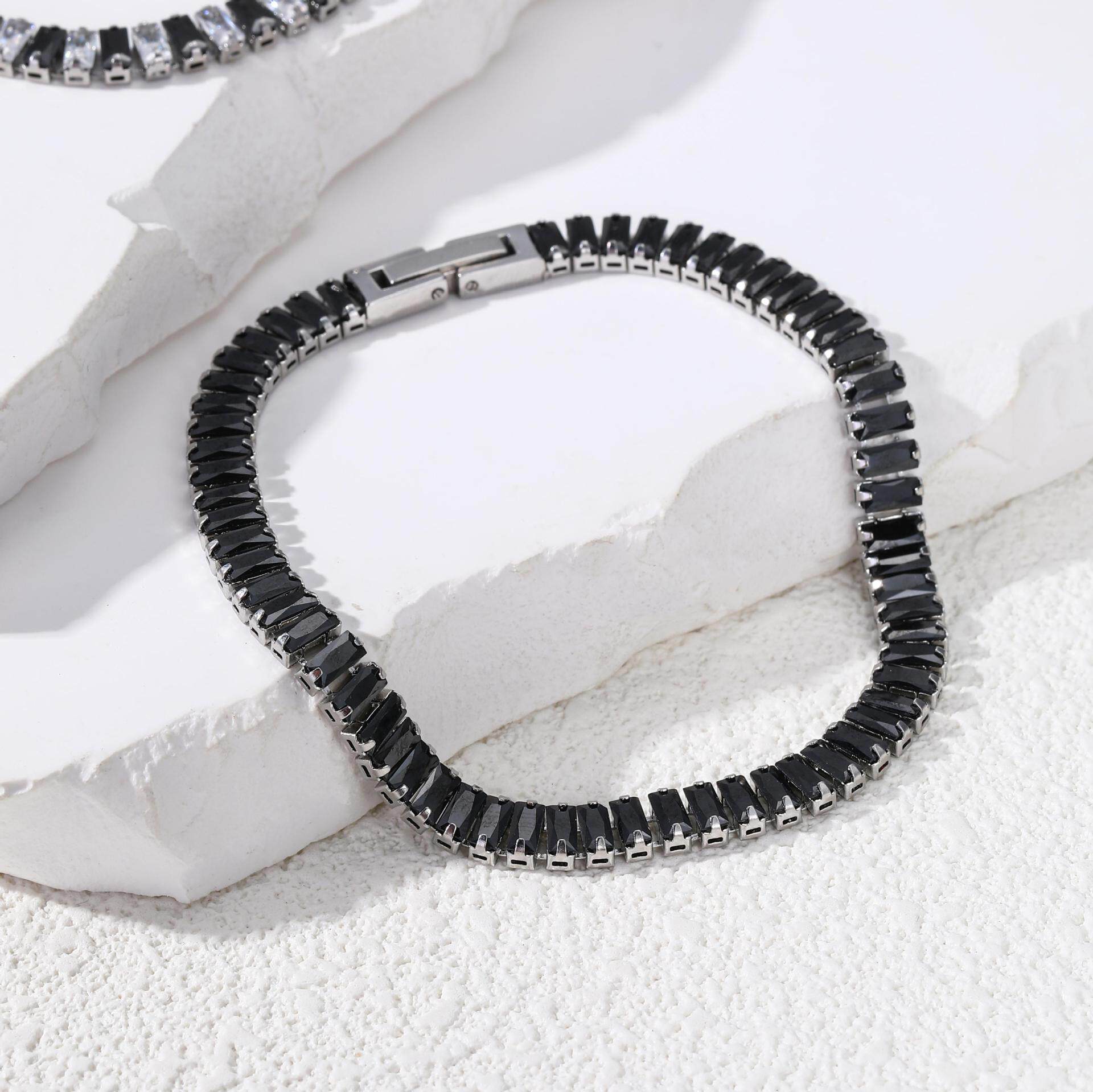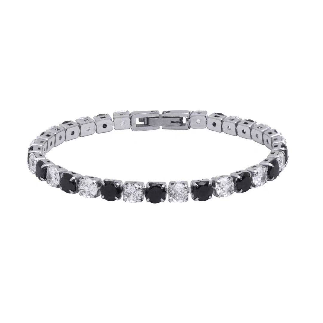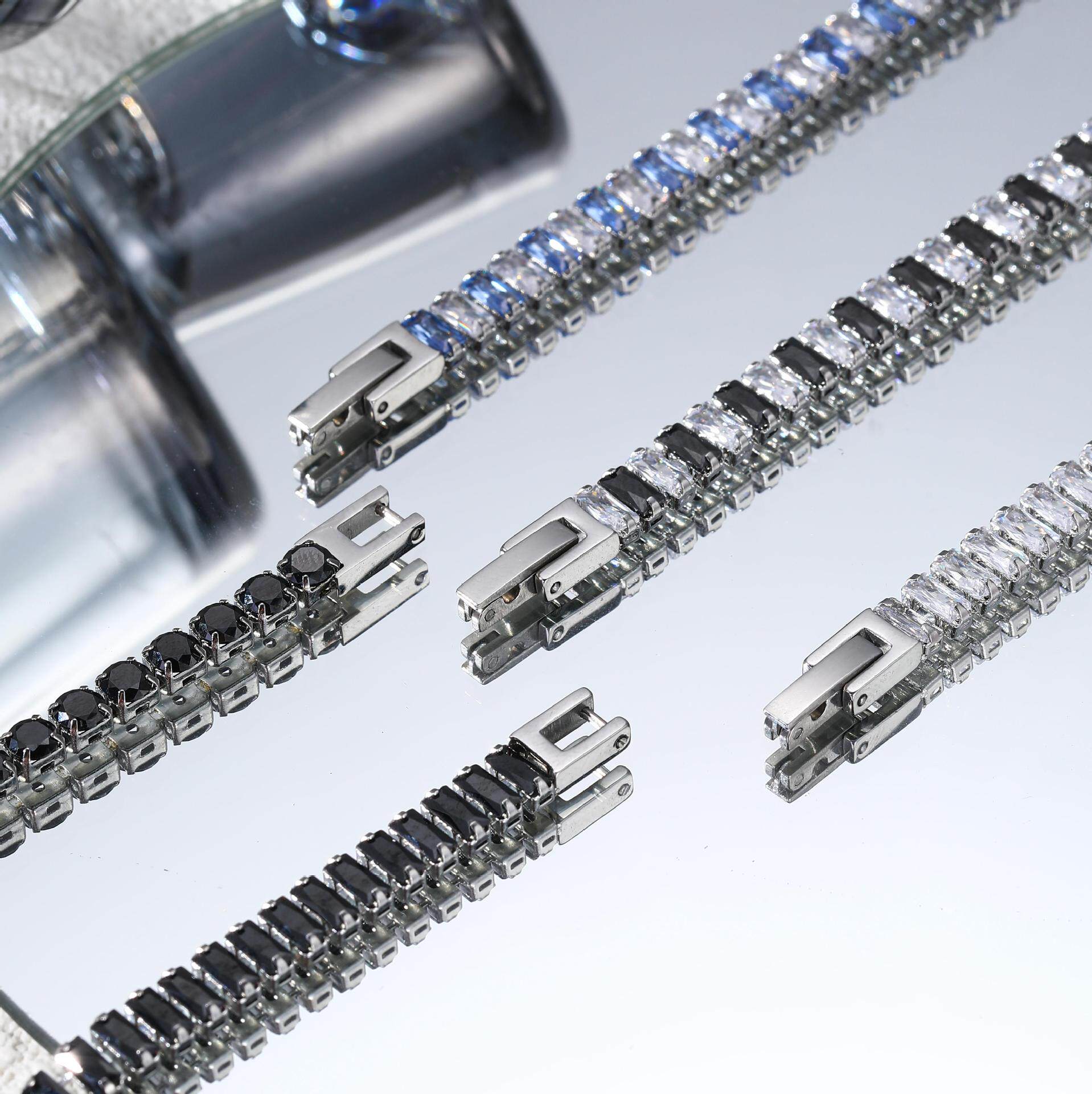 | Color | White zircon bracelet steel color,Black zircon bracelet steel color,Black and white diamond zircon bracelet steel color,Blue and white zircon bracelet steel color,4mm black and white zircon claw set bracelet |