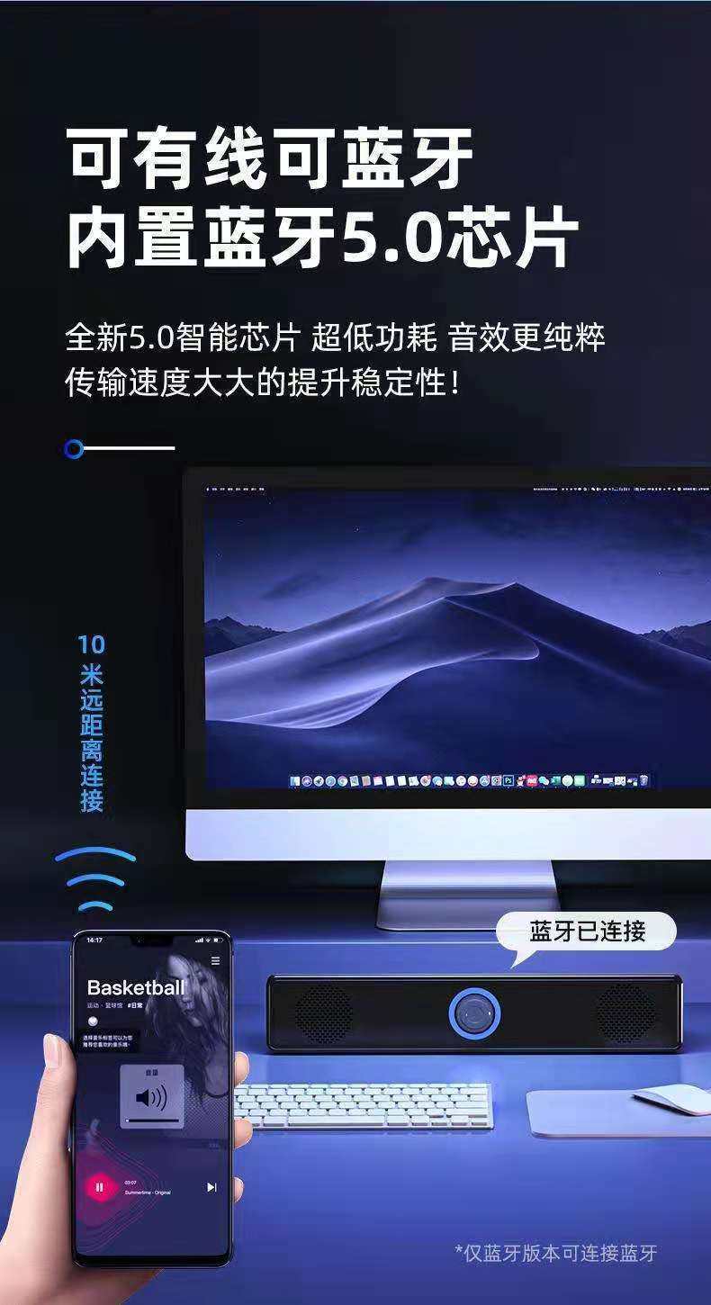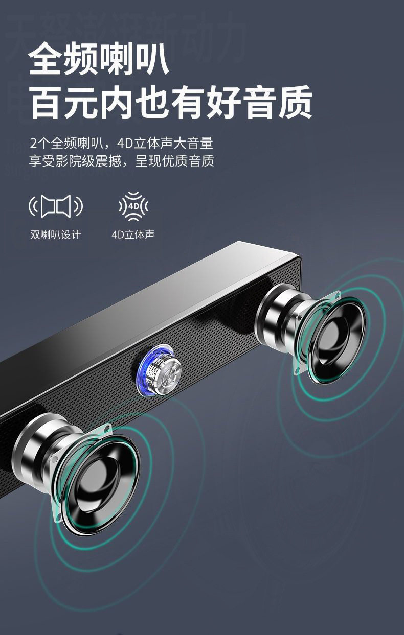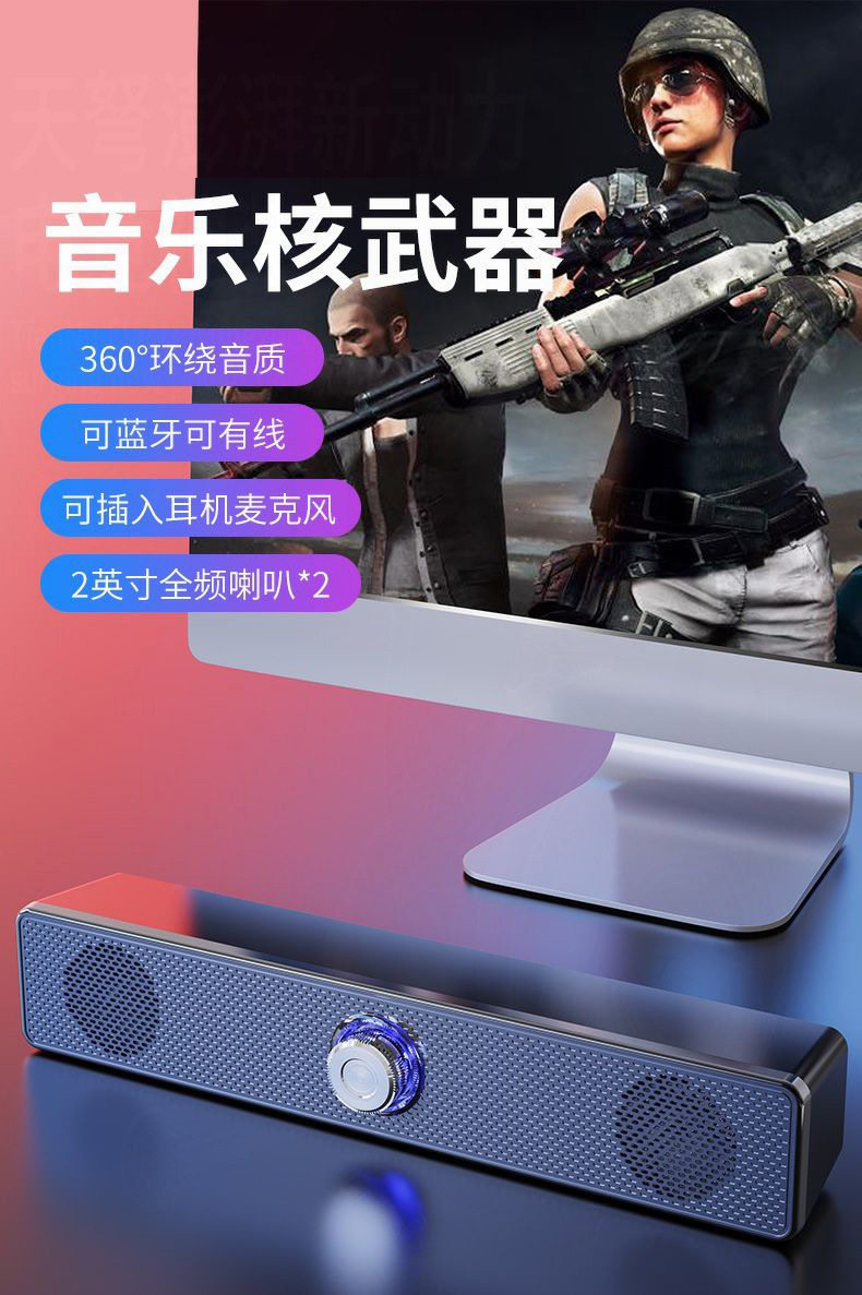 New Long Computer Audio Dual Speakers Stereo Desktop Desktop Notebook Wired Bluetooth Speaker Super Heavy and Low